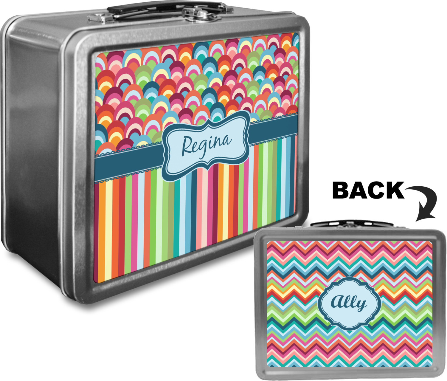 When customized, these boxes can also serve as a unique keepsake box! We print your design on both the front and back of this box, using a high quality matte vinyl, with waterproof inks that withstand the test of time. The designs are then machine cut, and adhered to the sides of the metal lunch container.