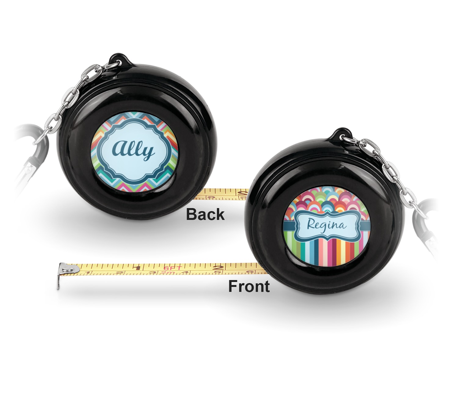 Now for personalizing! You get to personalize both sides of your tape measure. Have fun picking a cute pattern, font, or graphic! Make your personality shine through this fun tool.