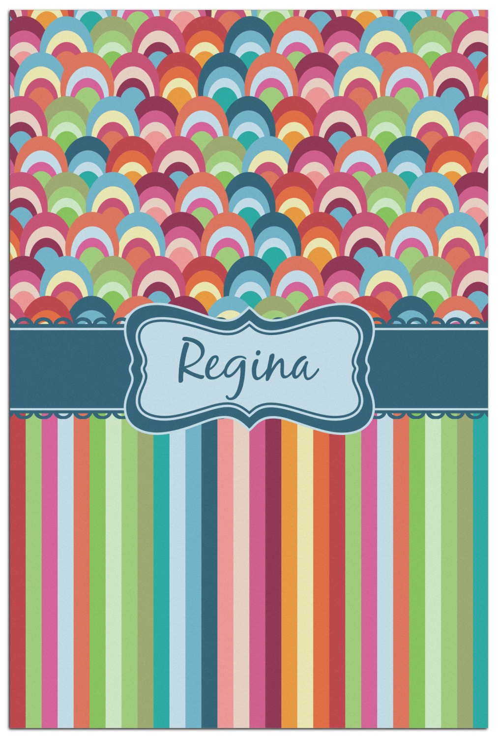 Modern meets retro meets stripes meets fish scales! This modern vertical stripe and fish scale design has a wonderful multicolored retro look to it. The decorating choices are endless with all these gorgeous colors and patterns.