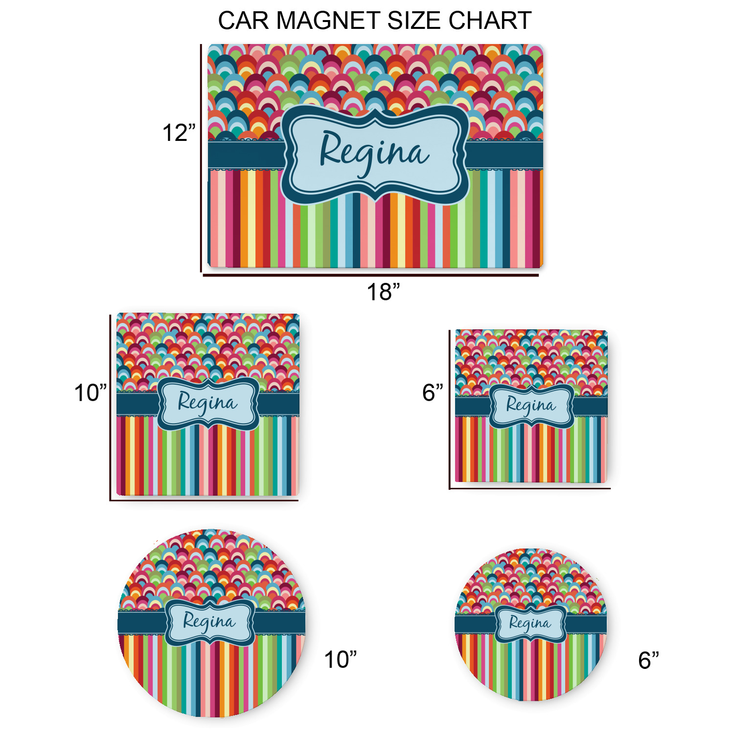Your personalized car magnets are available for purchase in two shapes and two sizes. We carry round and square editions; each shape can either be 6 by 6 inches, or 10 by 10 inches, depending on your needs. Both versions are 1 millimeter thick, which is considered, within the industry, as the ideal thickness for automobile magnets. The magnetic car decals will adhere to any smooth, metal surface of your cars body, such as the trunk door or a side panel. However, please note that some vehicles are constructed from fiberglass bodies, which prevents the adhesion of anything magnetic. We advise that you test your vehicle before purchasing these magnets.
