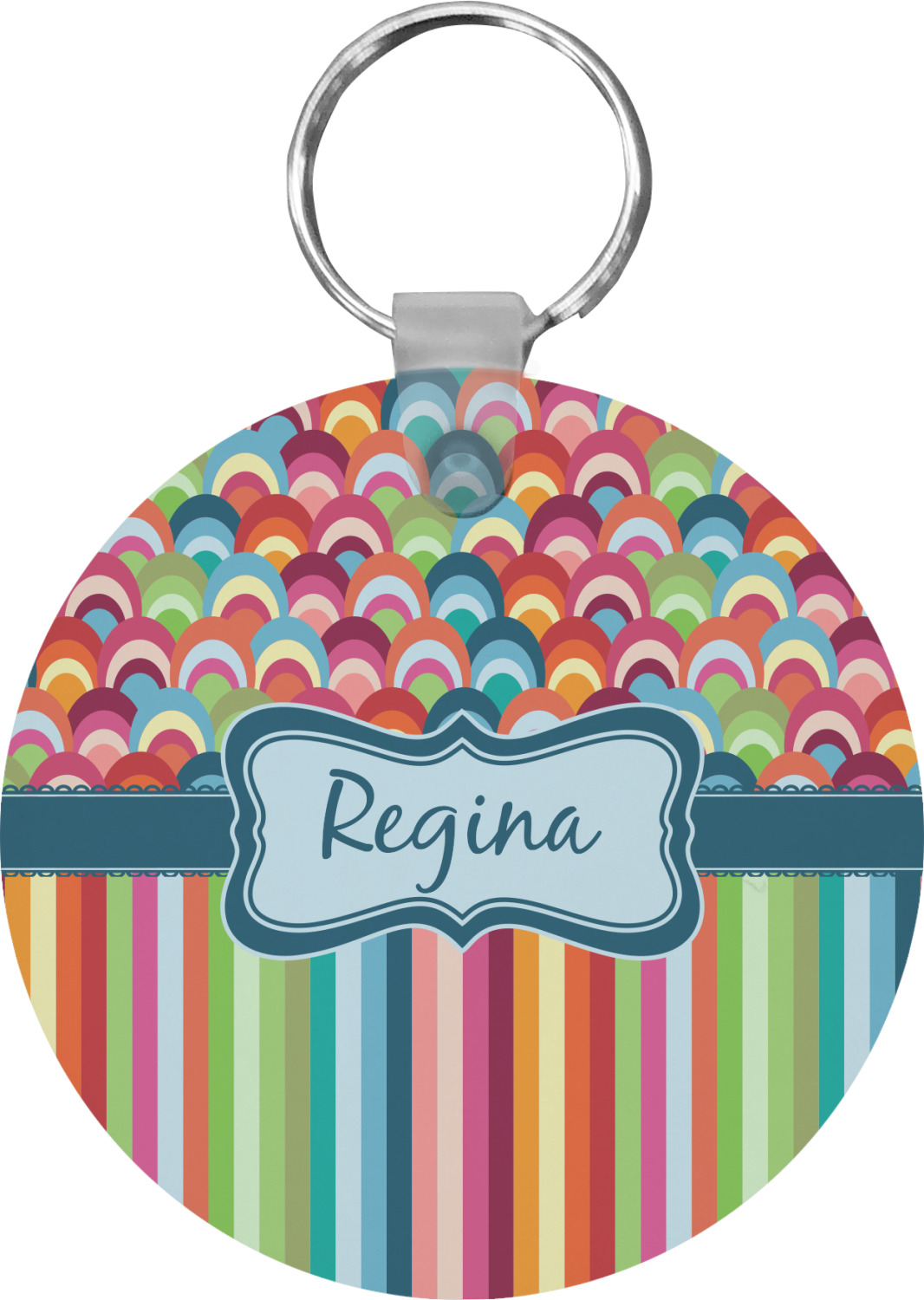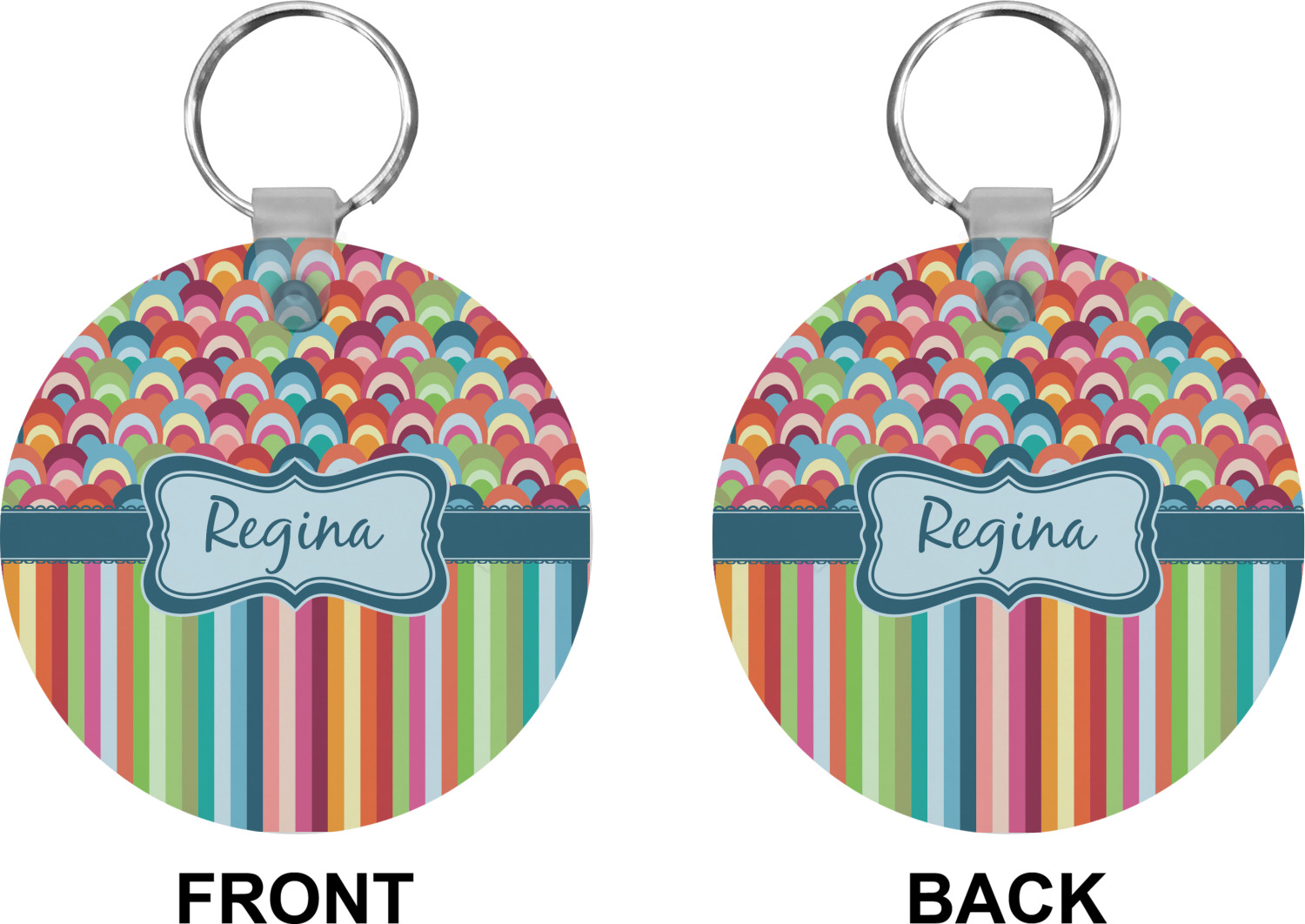 Our personalized keychains attach to the included metal, split key ring with a plastic, removable snap. Since a metal ring is included with your purchase, you have the liberty to keep your keys together on the ring, with or without your unique keychain. We offer this keychain in three different shapes: circle, heart, or diamond. We print your personalized design(s) on both sides of the key chain, and the surface has a glossy, reflective finish that only emphasizes your design. Each keychain is approximately 2.25 by 2.25 inches.