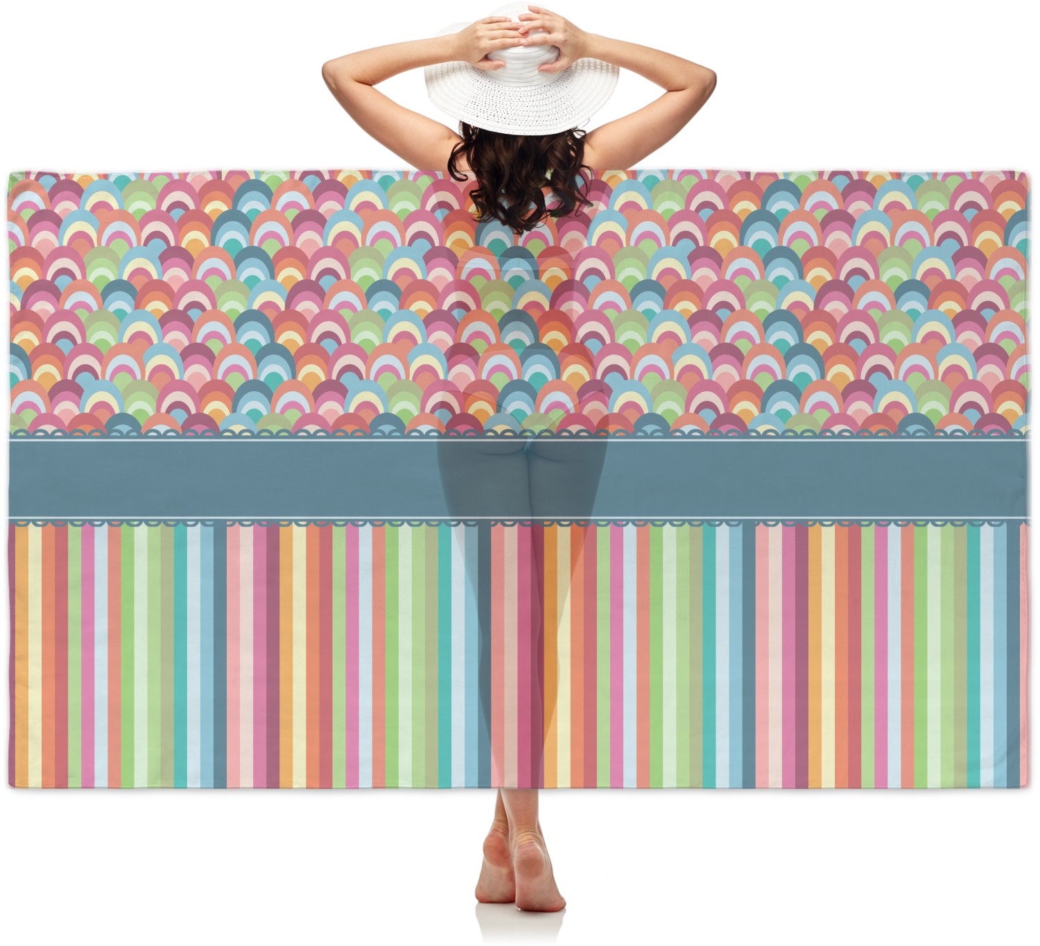 Modern meets retro meets stripes meets fish scales! This modern vertical stripe and fish scale design has a wonderful multicolored retro look to it. The decorating choices are endless with all these gorgeous colors and patterns.