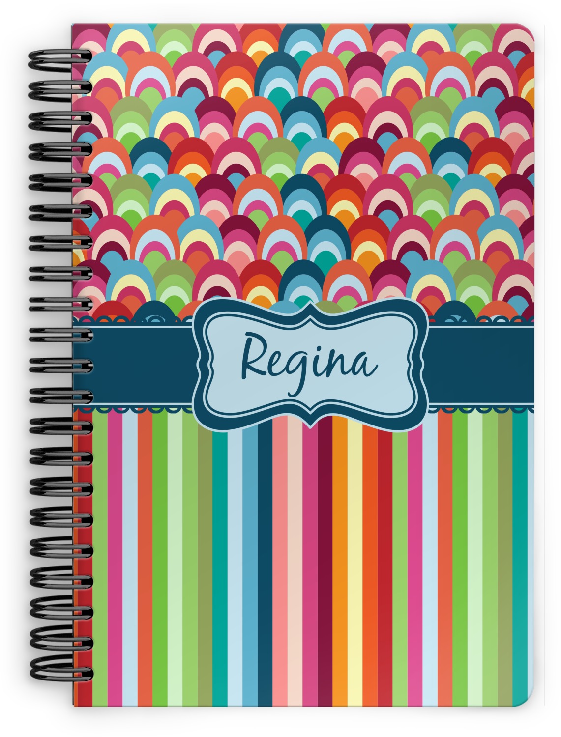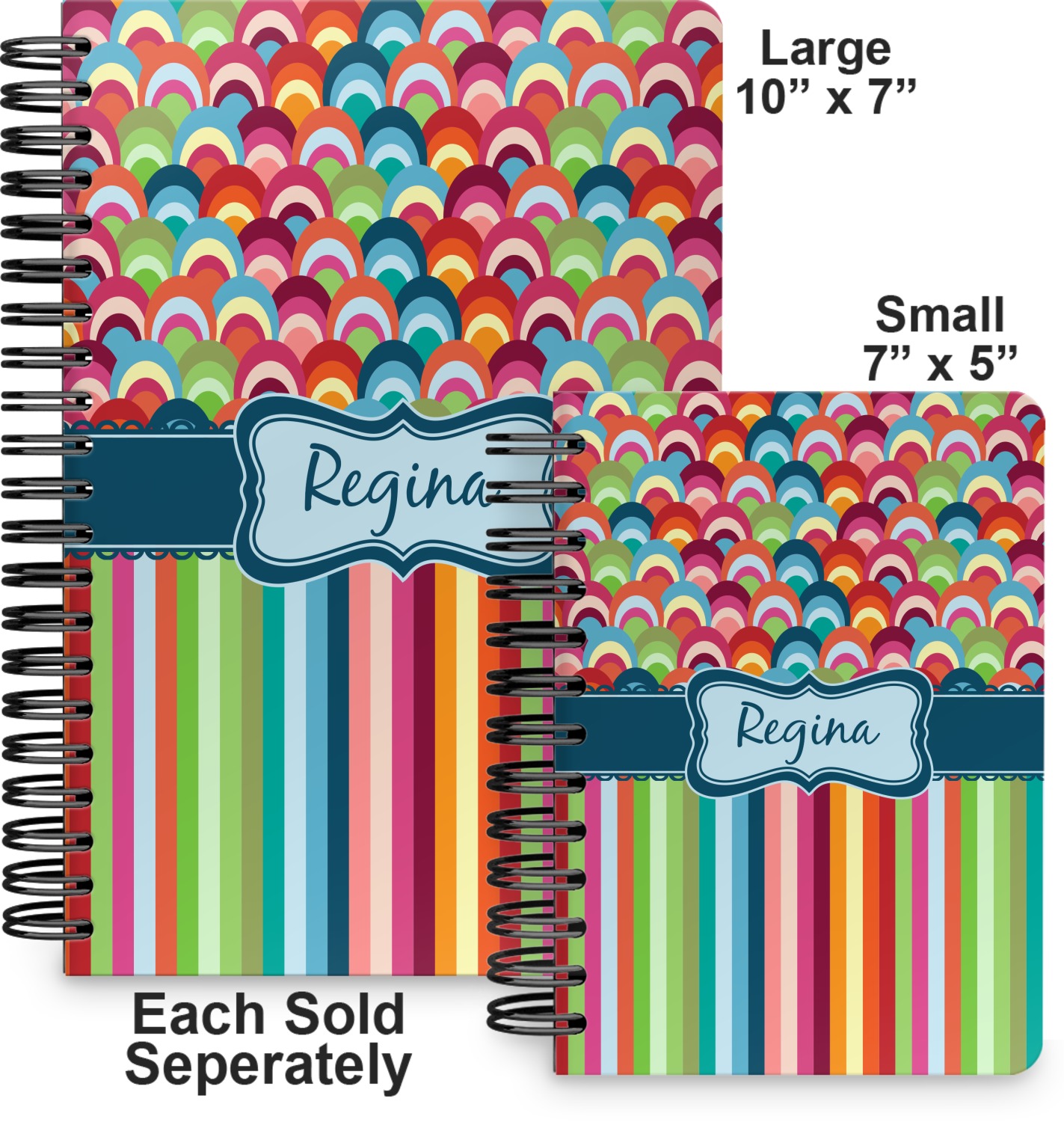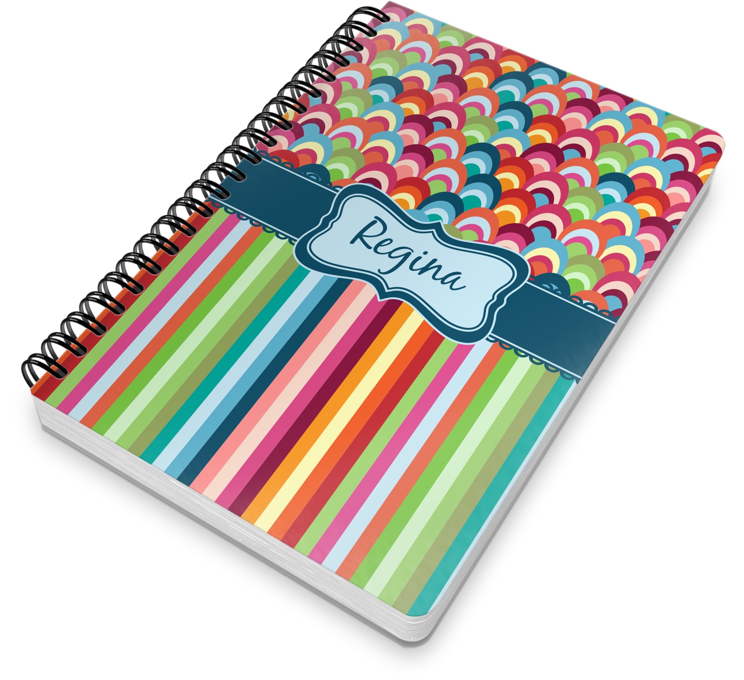 This spiral notebook includes 75 sheets of thick, ruled paper. The front and back of this custom notebook is made of a robust, laminate, plastic covering. We print your personalization on these two panels, underneath a glossy finish, which emphasizes the colors of your design. The two panels and the sheets of paper are held together by a sturdy, black coil. The paper within your bound notebook is perforated for easy, clean tearing.