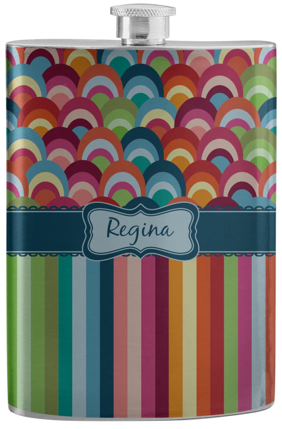 Modern meets retro meets stripes meets fish scales! This modern vertical stripe and fish scale design has a wonderful multicolored retro look to it. The decorating choices are endless with all these gorgeous colors and patterns.