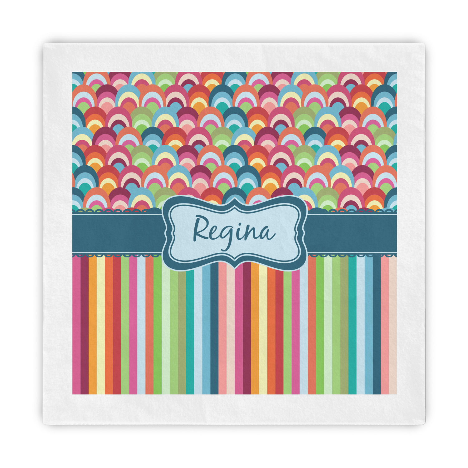 Modern meets retro meets stripes meets fish scales! This modern vertical stripe and fish scale design has a wonderful multicolored retro look to it. The decorating choices are endless with all these gorgeous colors and patterns.