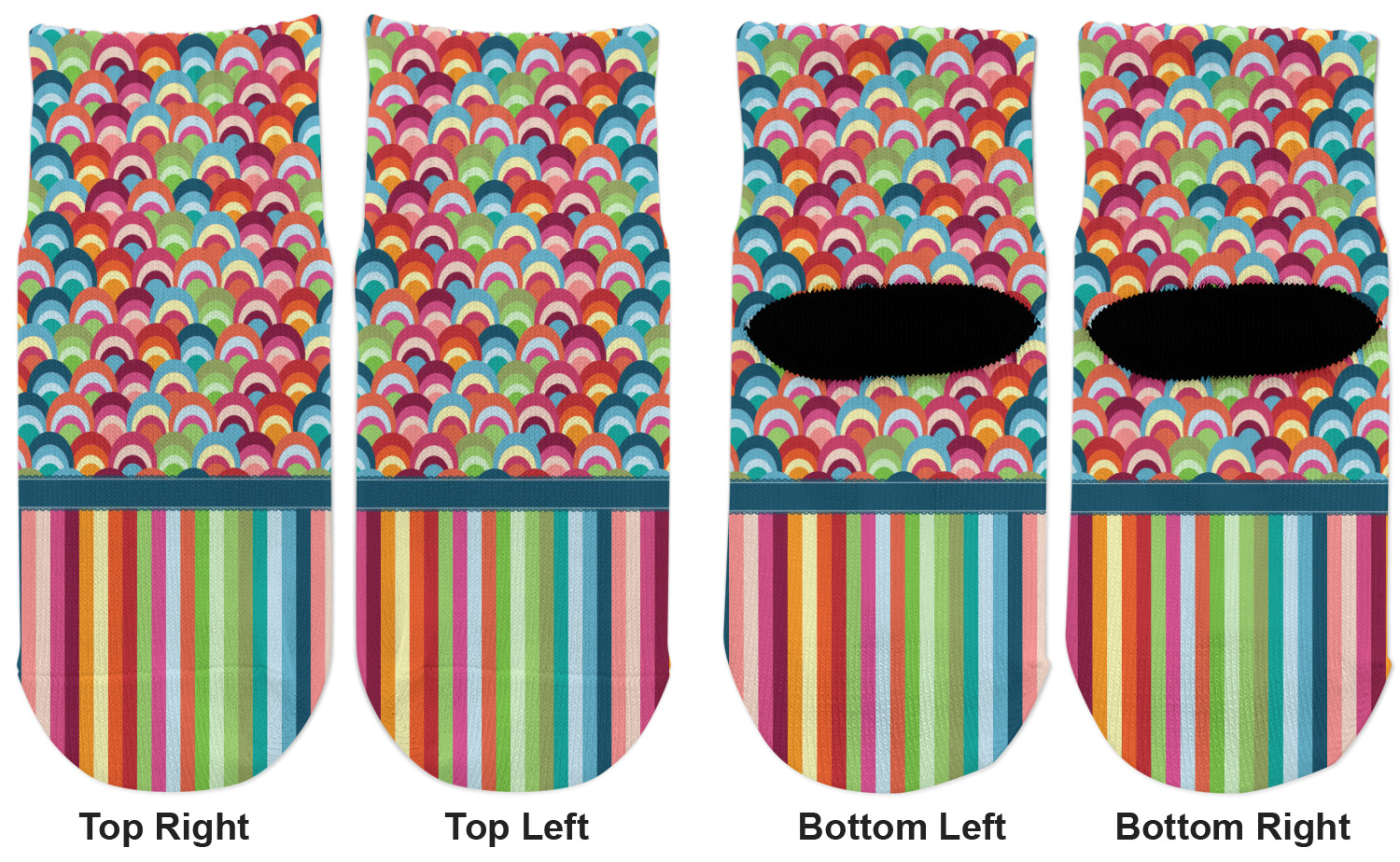 Modern meets retro meets stripes meets fish scales! This modern vertical stripe and fish scale design has a wonderful multicolored retro look to it. The decorating choices are endless with all these gorgeous colors and patterns.