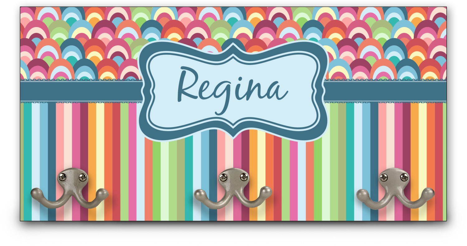This coat rack is the perfect way to add some personality to your wall or entryway. The board is made of a strong maple that is approximately 16" x 8". The three 2-prong hooks are a sturdy metal that have three screws attaching them to the board. Your design is printed right onto the front of the board while the back and sides are a simple black.