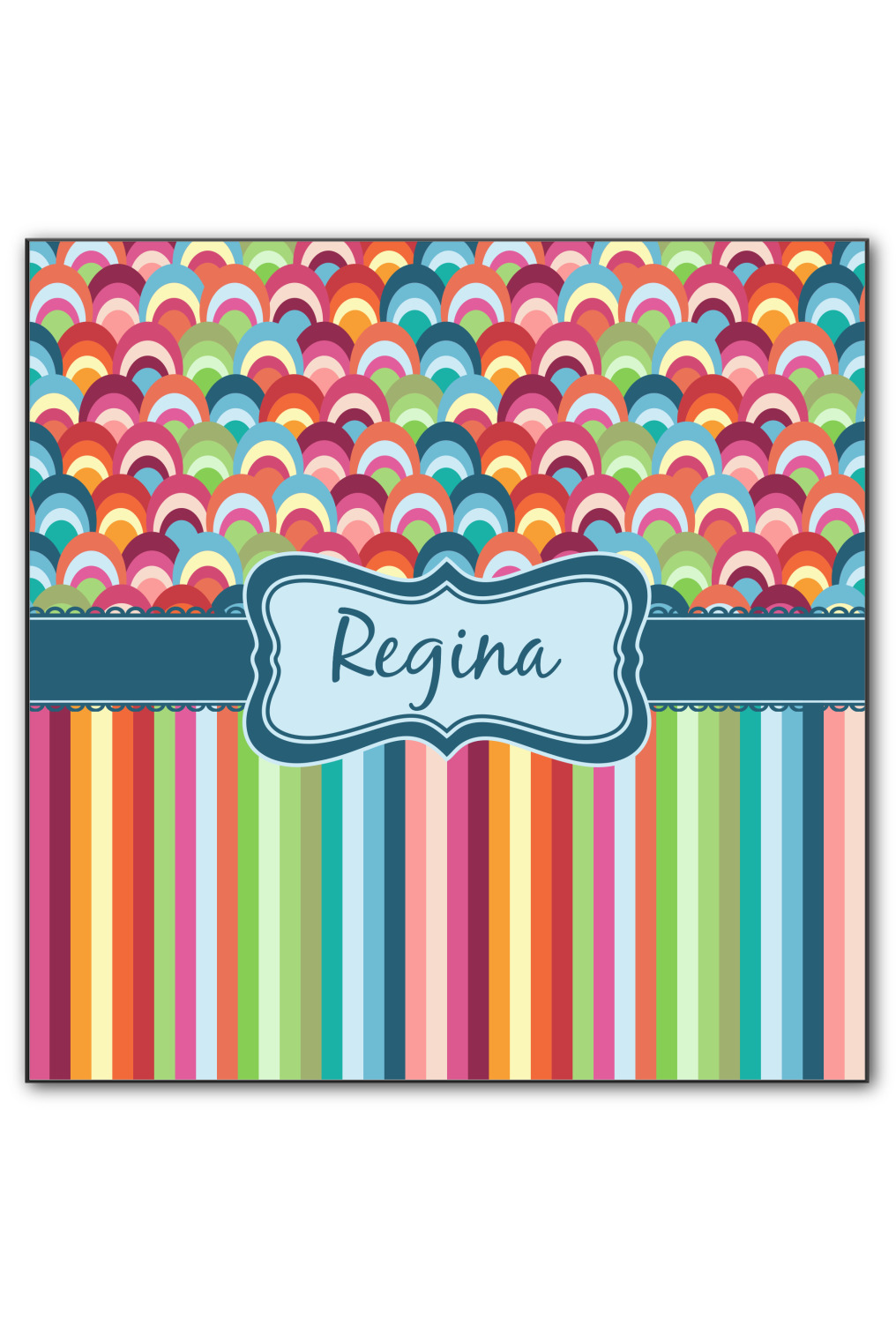 Modern meets retro meets stripes meets fish scales! This modern vertical stripe and fish scale design has a wonderful multicolored retro look to it. The decorating choices are endless with all these gorgeous colors and patterns.