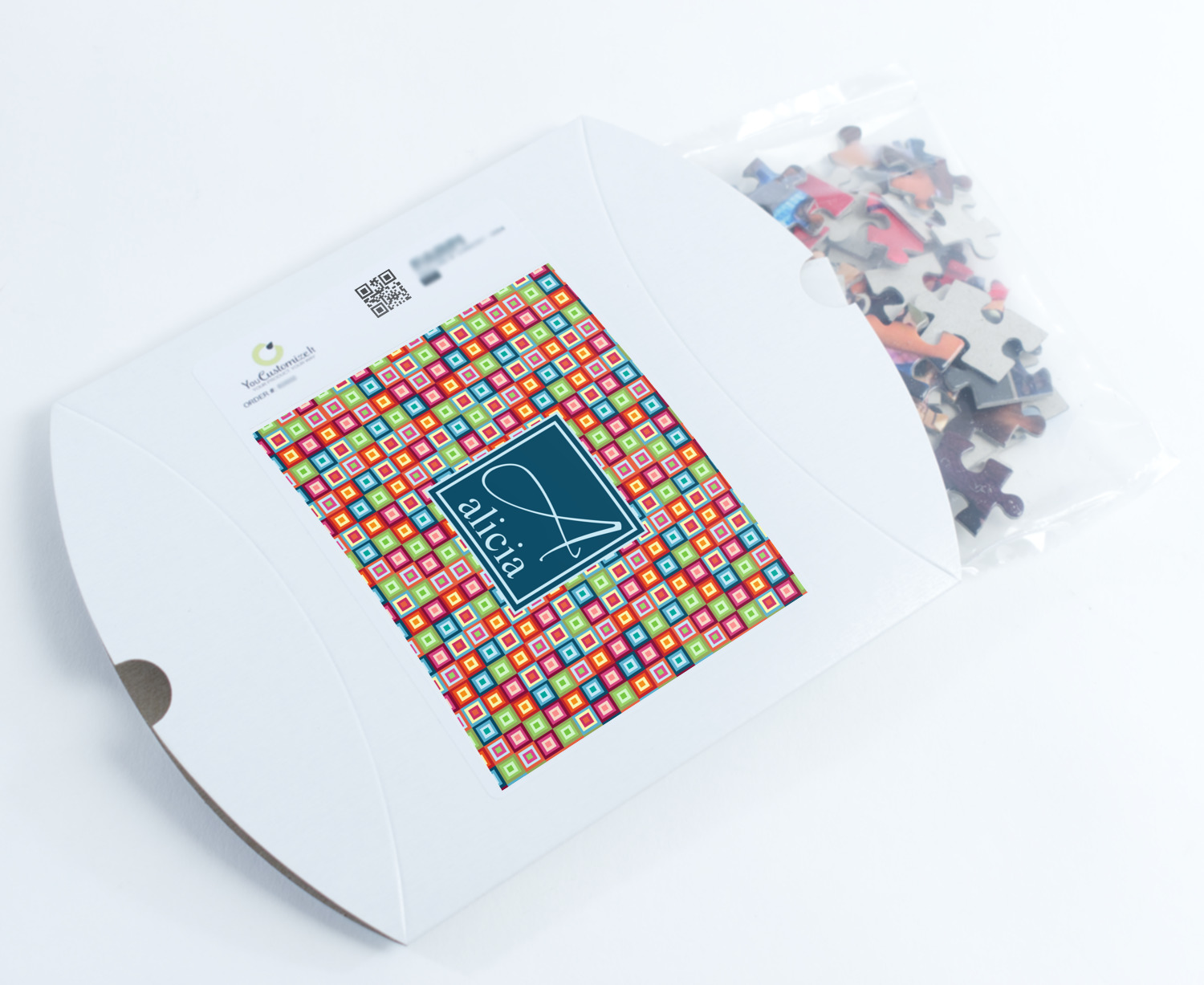 You can also upload your logo or art that you or your kids drew. To create more challenging jigsaw puzzles, you can create a pattern from with your logo or artwork. You can also add other elements such as text or personalization.
