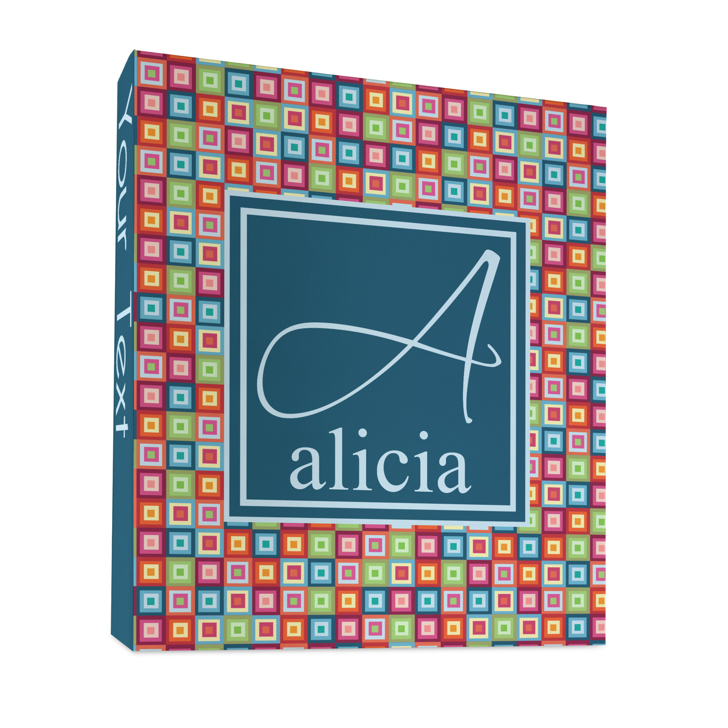 Made from a sturdy cardboard base with a full high quality canvas textured vinyl wrap with the design of your choice. Unlike our standard 3-ring binder with the full wrap design your artwork wraps from the front and back and into the inside of the binder.