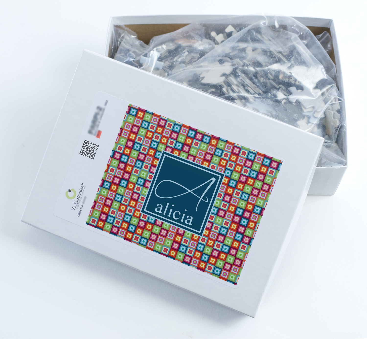 You can also upload your logo or art that you or your kids drew. To create more challenging jigsaw puzzles, you can create a pattern from with your logo or artwork. You can also add other elements such as text or personalization.