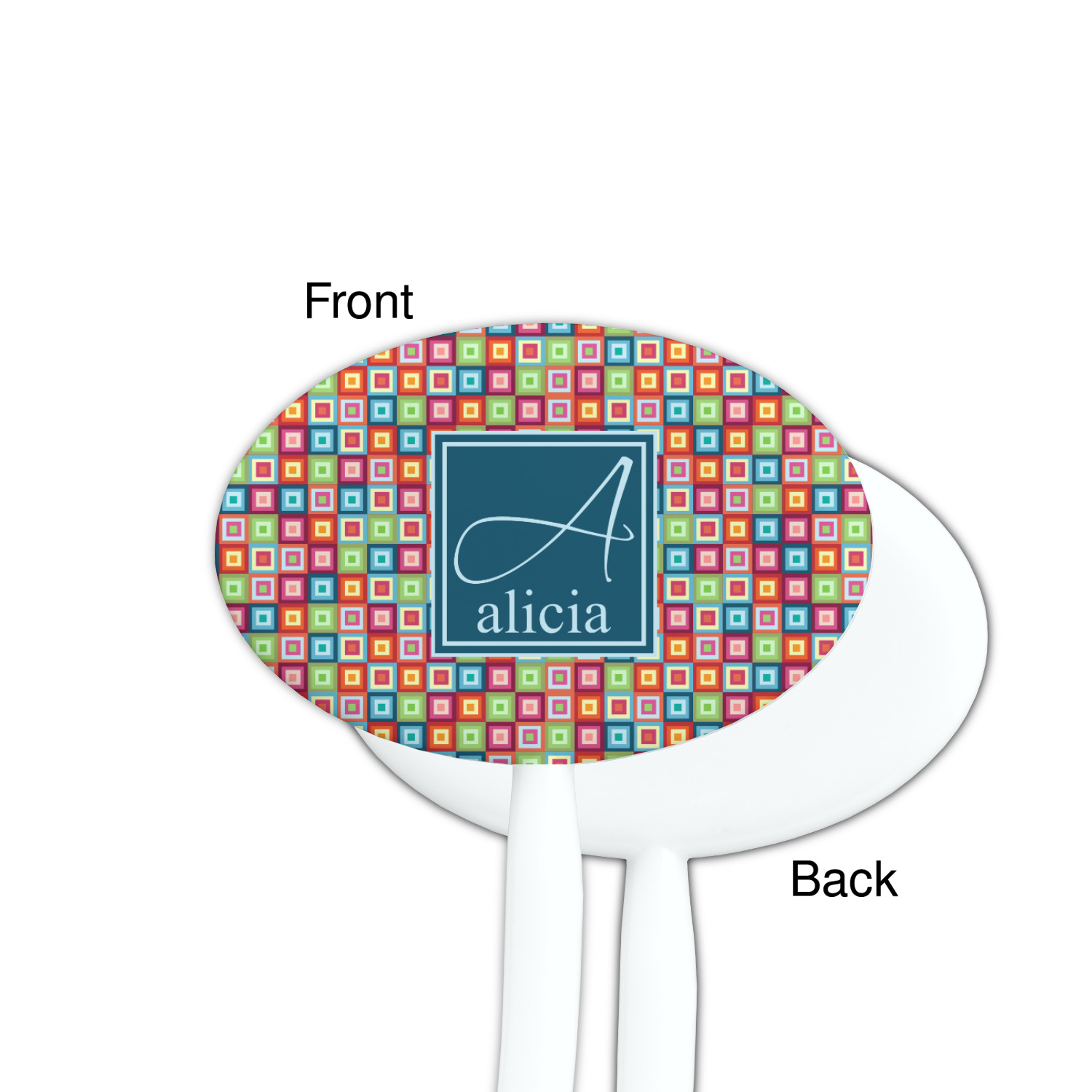 Shape + Symbol Designs for 7" Oval Plastic Stir Sticks - White - Single-Sided