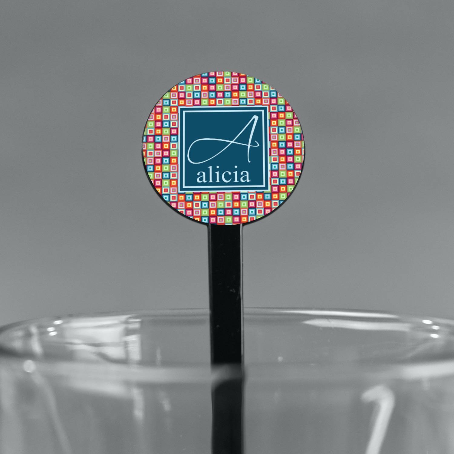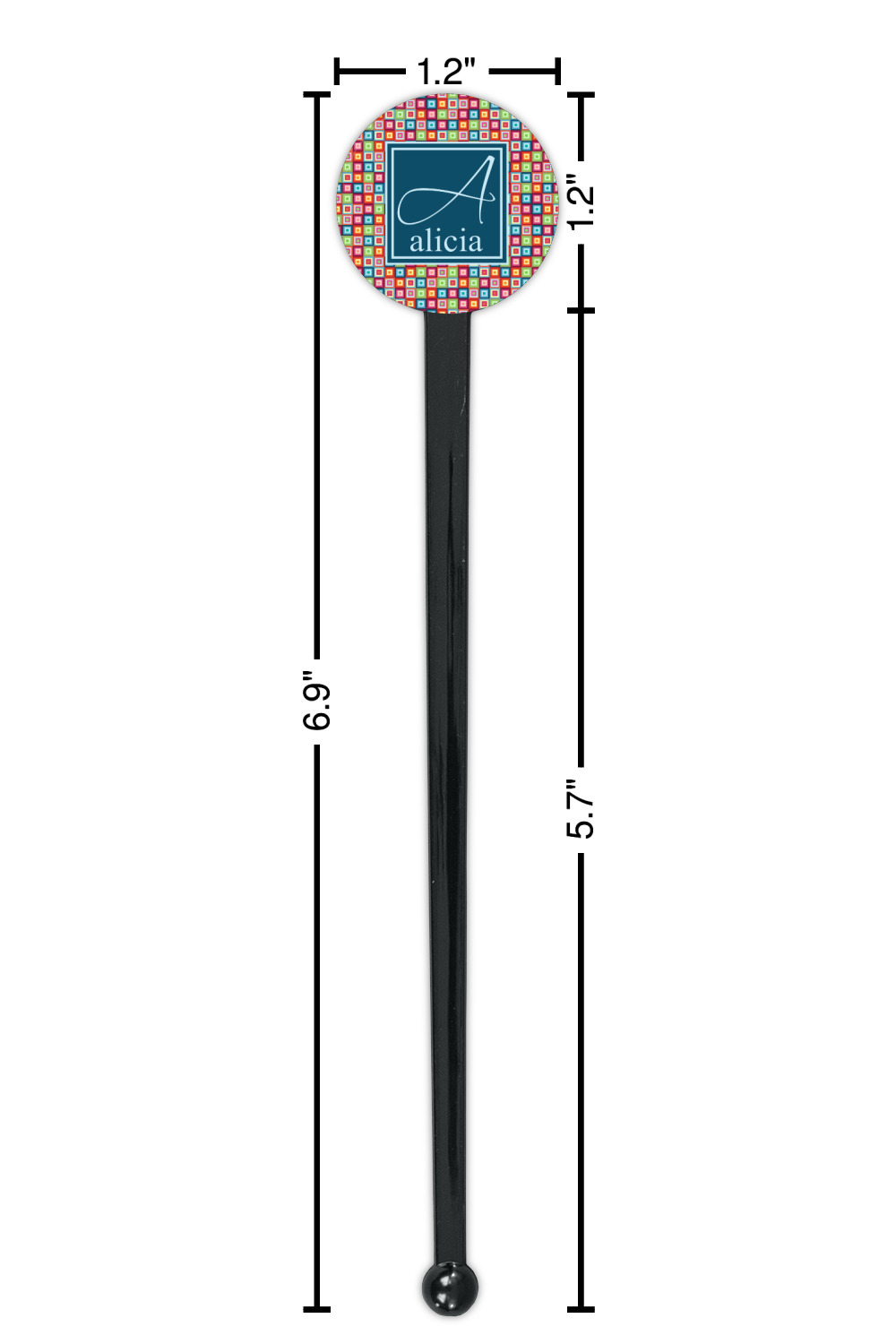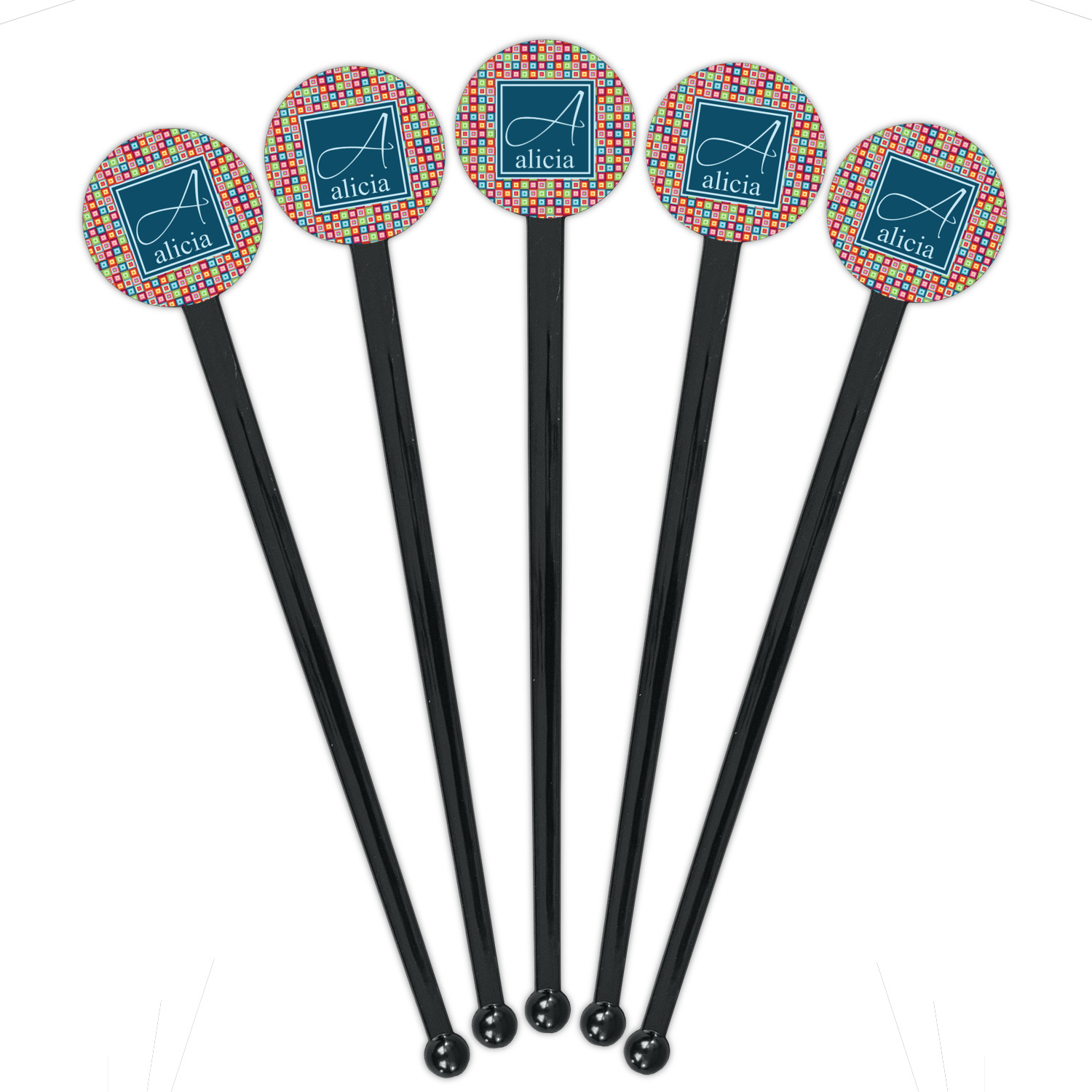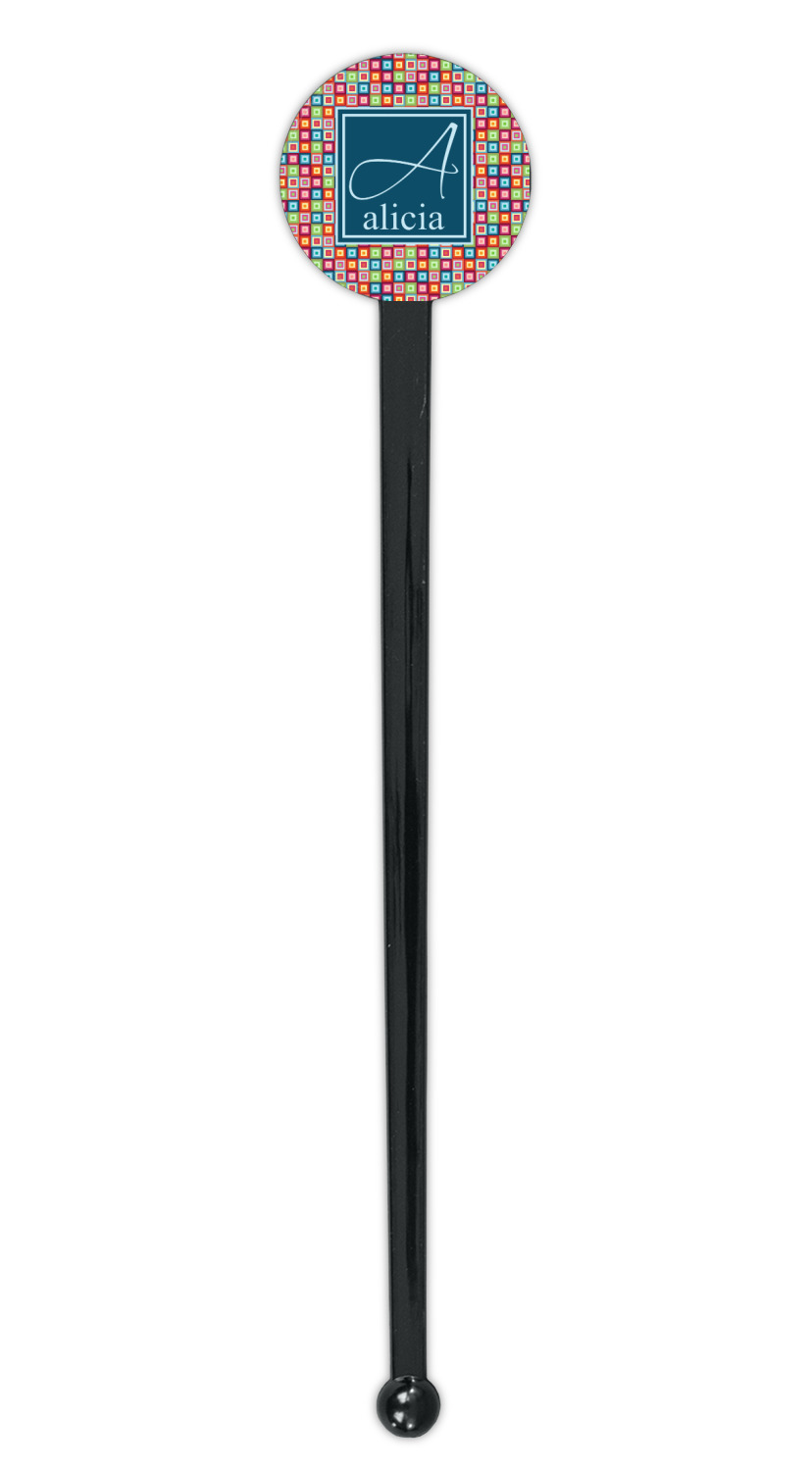 Shape + Symbol Designs for 7" Round Plastic Stir Sticks - Black - Single-Sided