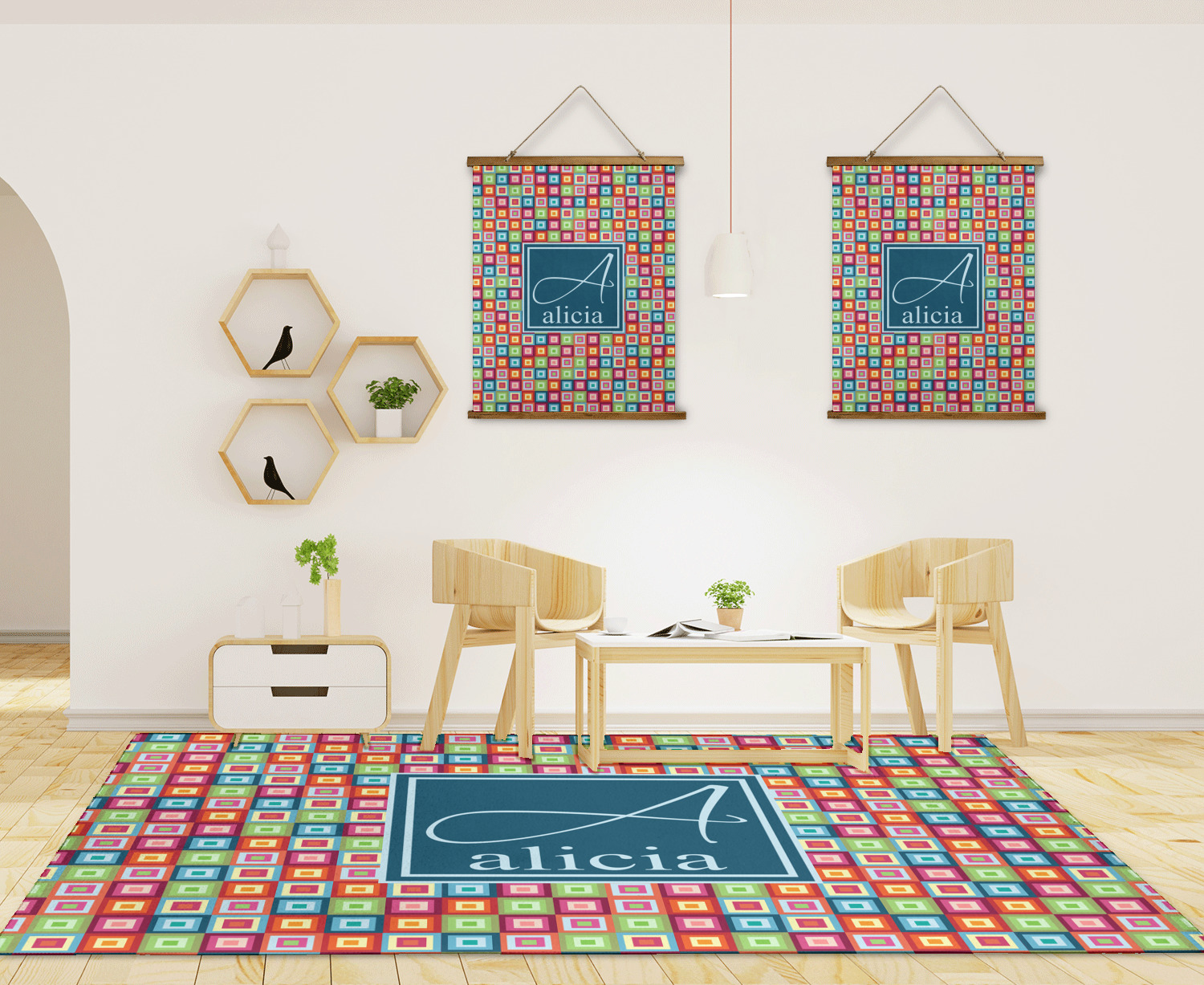 Area rugs add color and warmth to any room in the house, so create a custom area rug to suit your personal style and match it to the colors in your home. Have it personalized with a monogram, initial, name or a combination of these - the choice is yours.