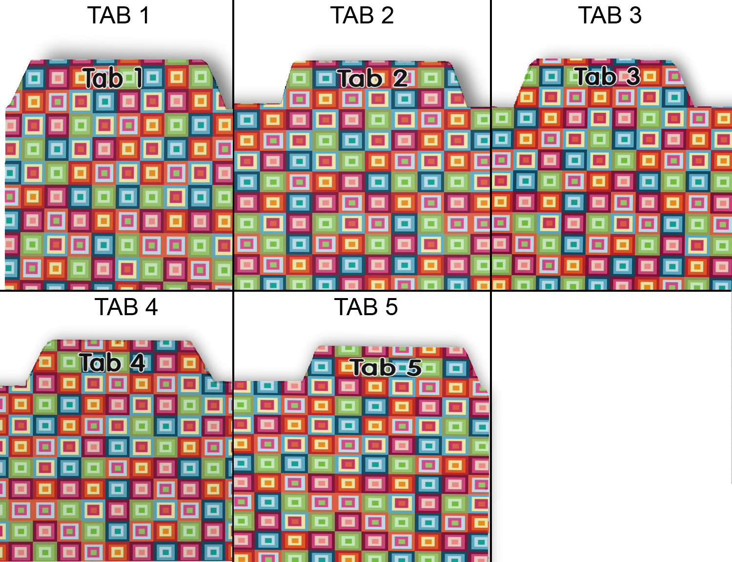 Whether you use binders at school or at work, we have designs to suit all of them. Available in 5 or 6 tab sets, you are sure to find a set to suit your needs. The back of each one is white and can be used to take notes, write vital information on, etc.