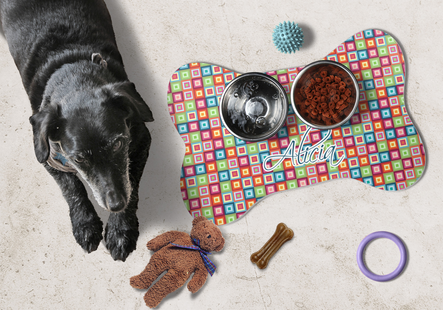 If you are purchasing a pet food mat, consider a customized dog bowl, dog collar, a bone-shaped dog tag, or any other pet supplies to match! Check out our Pet Accessories category for even more options! Craft a design that you want to extend to your eating area? Try our Home and Garden category for kitchen decor options!