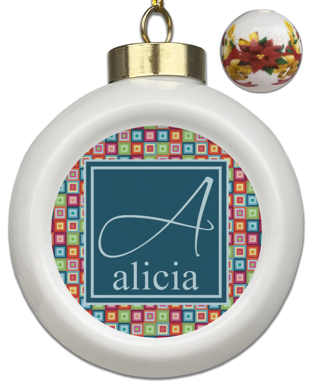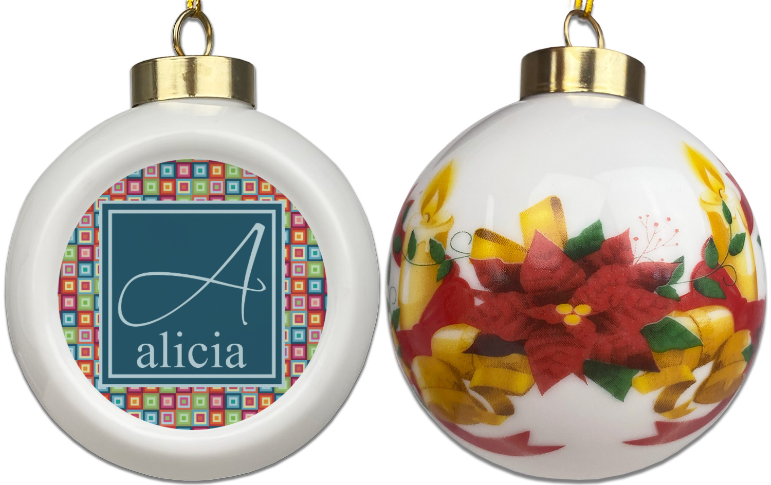 Our Christmas ornaments are a unique ceramic ball shape with a twist as it has a flat face to display your custom design! Select from one of our two design types - Christmas Tree or Poinsettia Garland - to adorn the curved back of your personal design. Each ornament measures 3H x 2.5W x 2D accompanied with a gold string accent for finishing touches to hang on your beautiful Christmas tree!