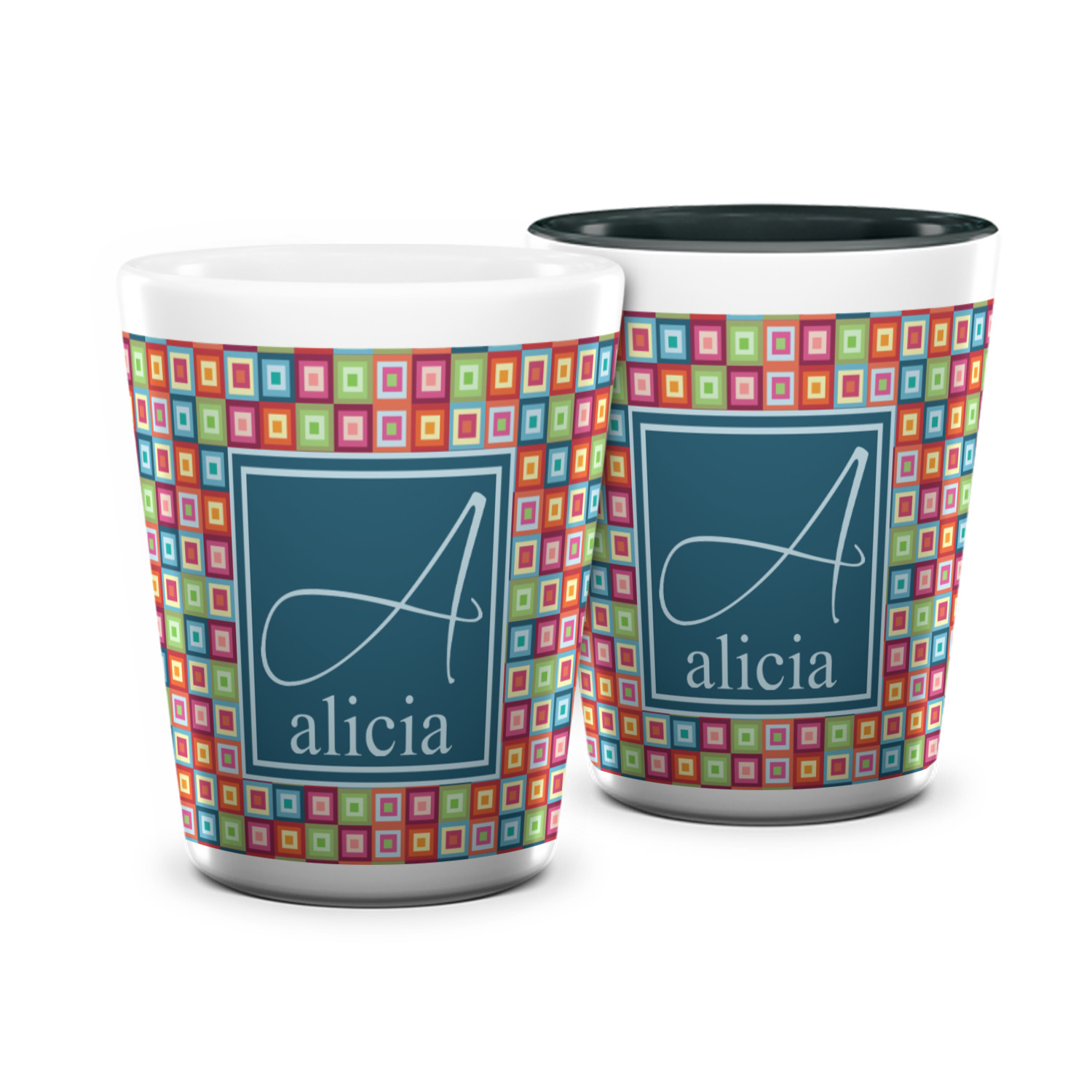 Made from ceramic these shot glasses are printed in full color with the design of your choice. These are a standard 1.5oz size and stand 2.25" tall. Available in a full white ceramic or a two-tone with a black color inside the shot glass. Buy a single or a set of 4, all of which can be designed separately to get you just what you want and need.