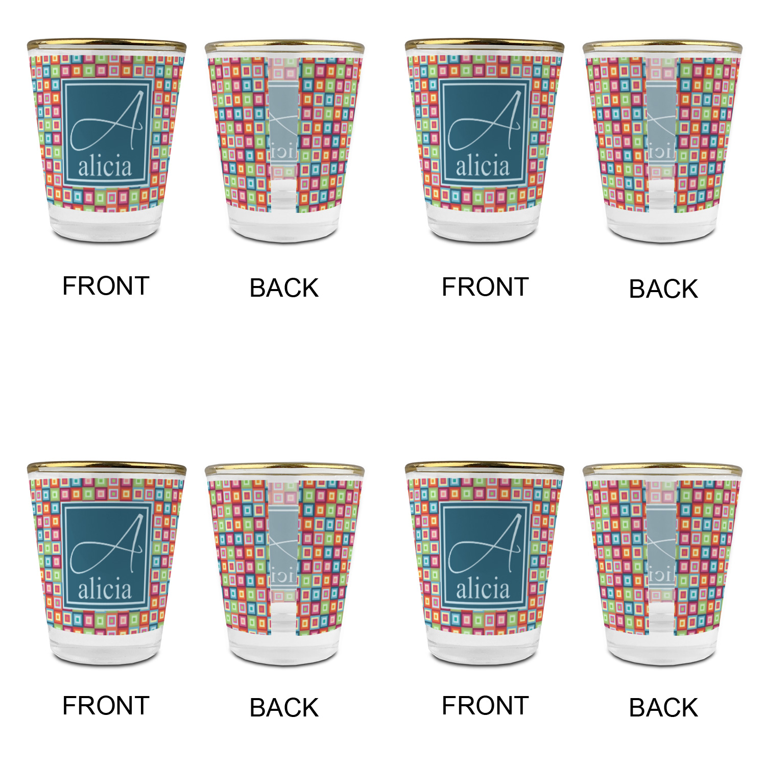 Shape + Symbol Designs for Glass Shot Glasses - 1.5 oz - with Gold Rim - Set of 4