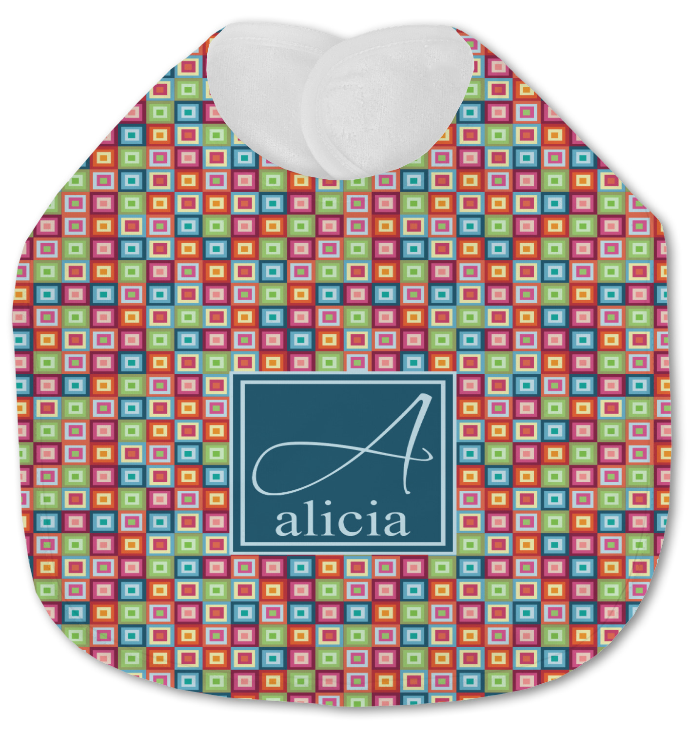Made of soft polyester, each customizable bib hugs comfortably around the neck to catch every drip and drool. Each bib design is printed with baby-safe ink and finished with a secure stitch pattern and velcro clasp. We carry two customizable bib styles -Microfiber Velour and Jersey Knit.