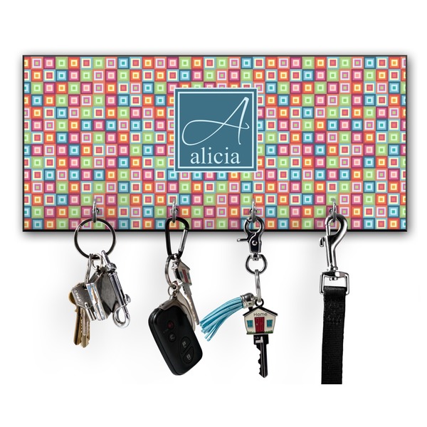 This 11" x 5" key hanger is made of sturdy wood and has four metal hooks lining the bottom. This is the perfect size for a family with several drivers. Not only can you hang keys on it though, but pet leashes and other small items. The board is black on the sides and back and is printed with the design of your choice on the front.