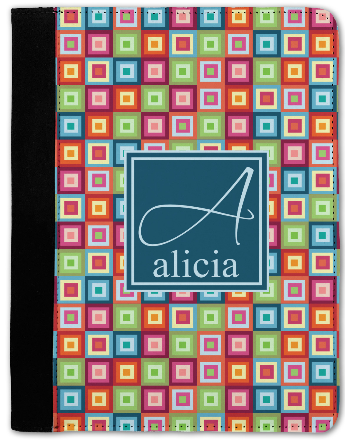 These personalized padfolios are made from a black, polyester microfiber and features a standard, 50-page notepad. However, these black padfolios can accommodate a pad with up to 100 pages. This model also features a slot pocket for any loose sheets of paper, small pockets for business cards, and an elastic band to secure a pen. We print your personalization across the front of this notepad portfolio in bright, vibrant color. These padfolios come in 2 sizes, Medium - approximately 10.25" x 8" for 5" x 8" paper and Large - approximately 12.5" x 8.5" for 8.5" x 11" paper.