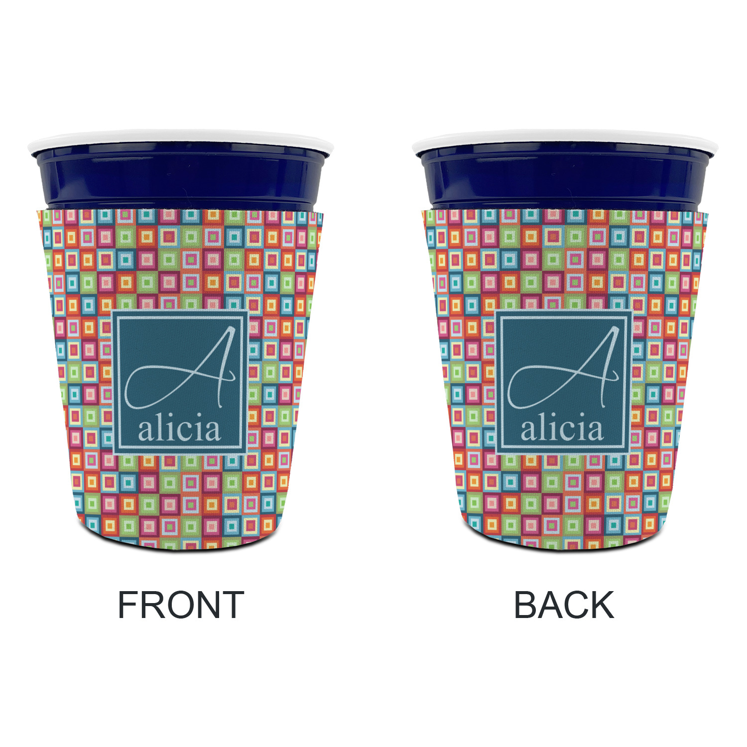 Made from neoprene with a polyester outer fabric and sewn seams, these premium quality party cup sleeves are very durable and will hold up to heavy use. They are available in 2 styles - with a bottom or just a sleeve to go around the outside of the tapered cup. The sleeve covers are about 4" tall and cover about 90% of the classic 16 oz. Solo cup.