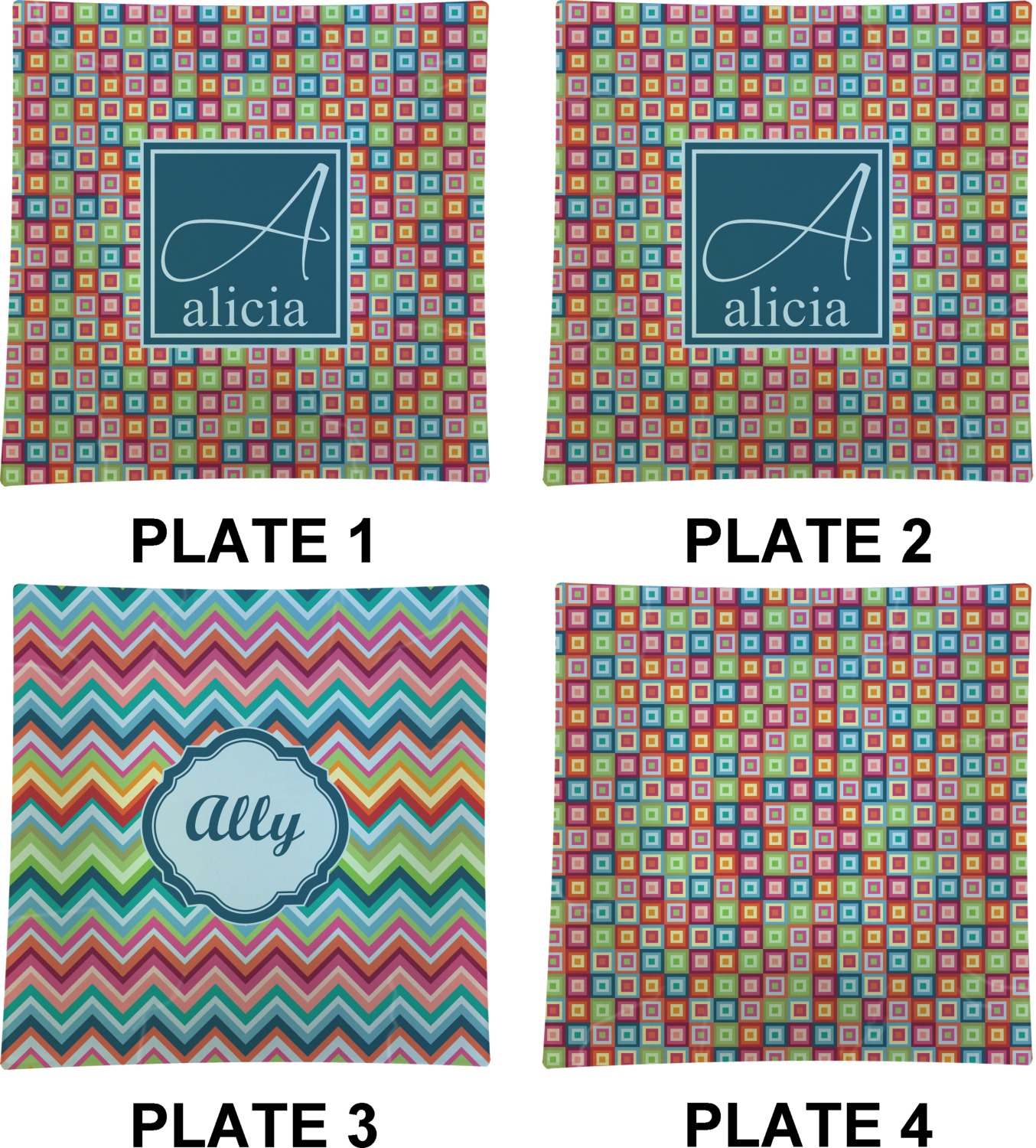 Shape + Symbol Designs for Glass Square Lunch / Dinner Plates 9.5" - Set of 4