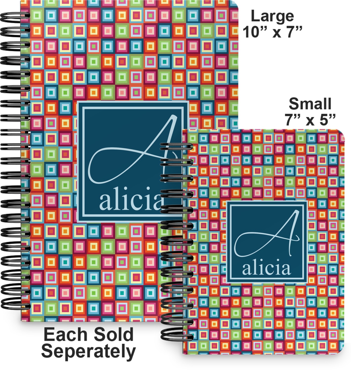 This spiral journal is available in two sizes. The first size is more suitable for a tote or purse and measures at 7" x 5". The second option is a bit larger, at 10" x 7", and is a better fit for a briefcase or backpack.