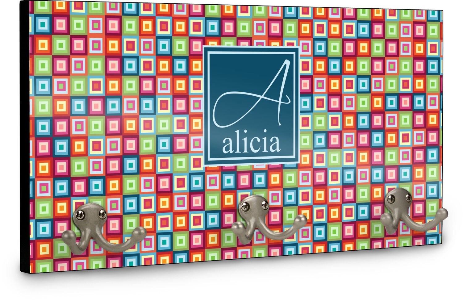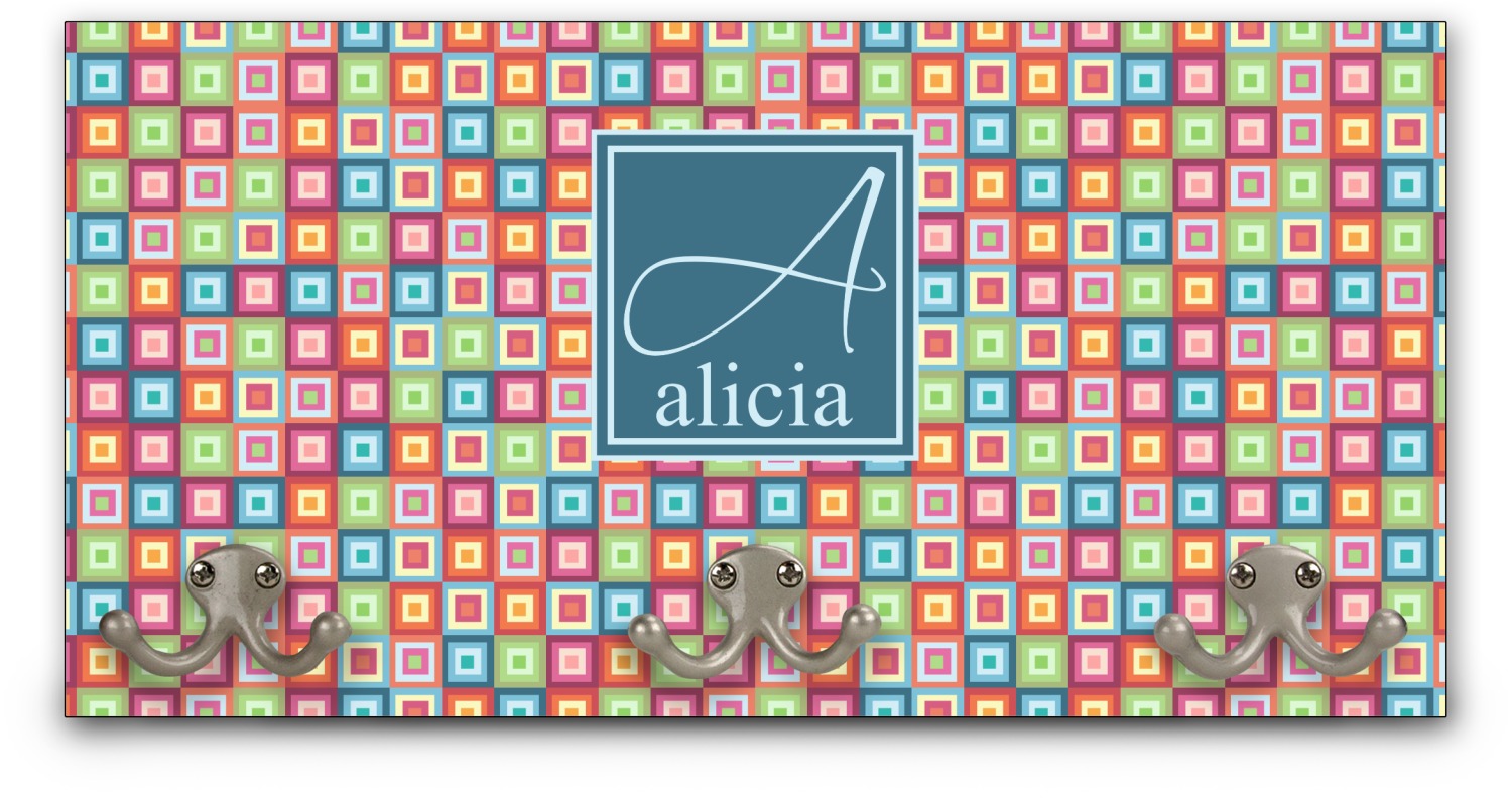 This coat rack is the perfect way to add some personality to your wall or entryway. The board is made of a strong maple that is approximately 16" x 8". The three 2-prong hooks are a sturdy metal that have three screws attaching them to the board. Your design is printed right onto the front of the board while the back and sides are a simple black.