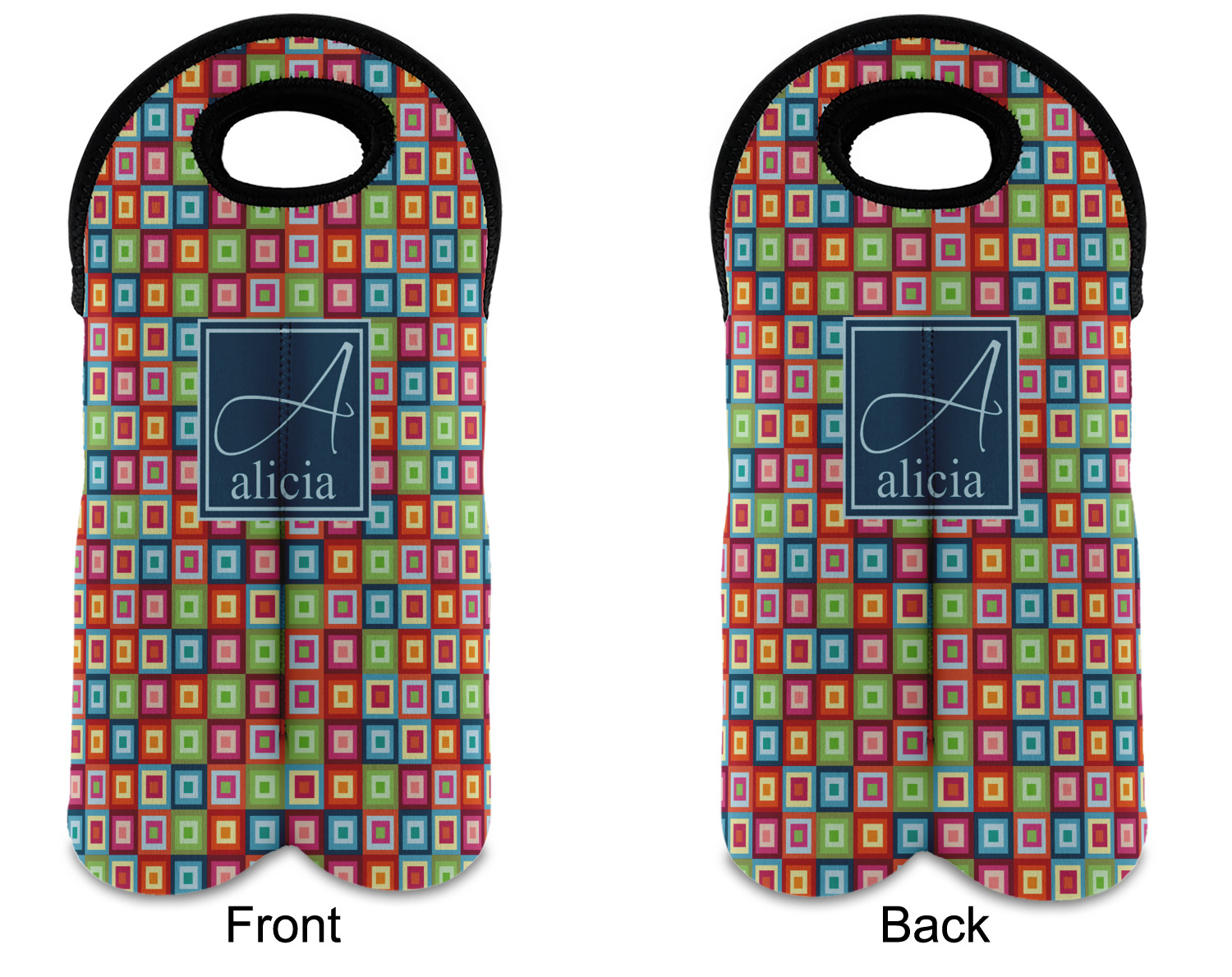 These tote bags are insulated to keep the bottles cold and have a stitched separation down the middle and double handles to keep the two bottles safe and secure during travels.