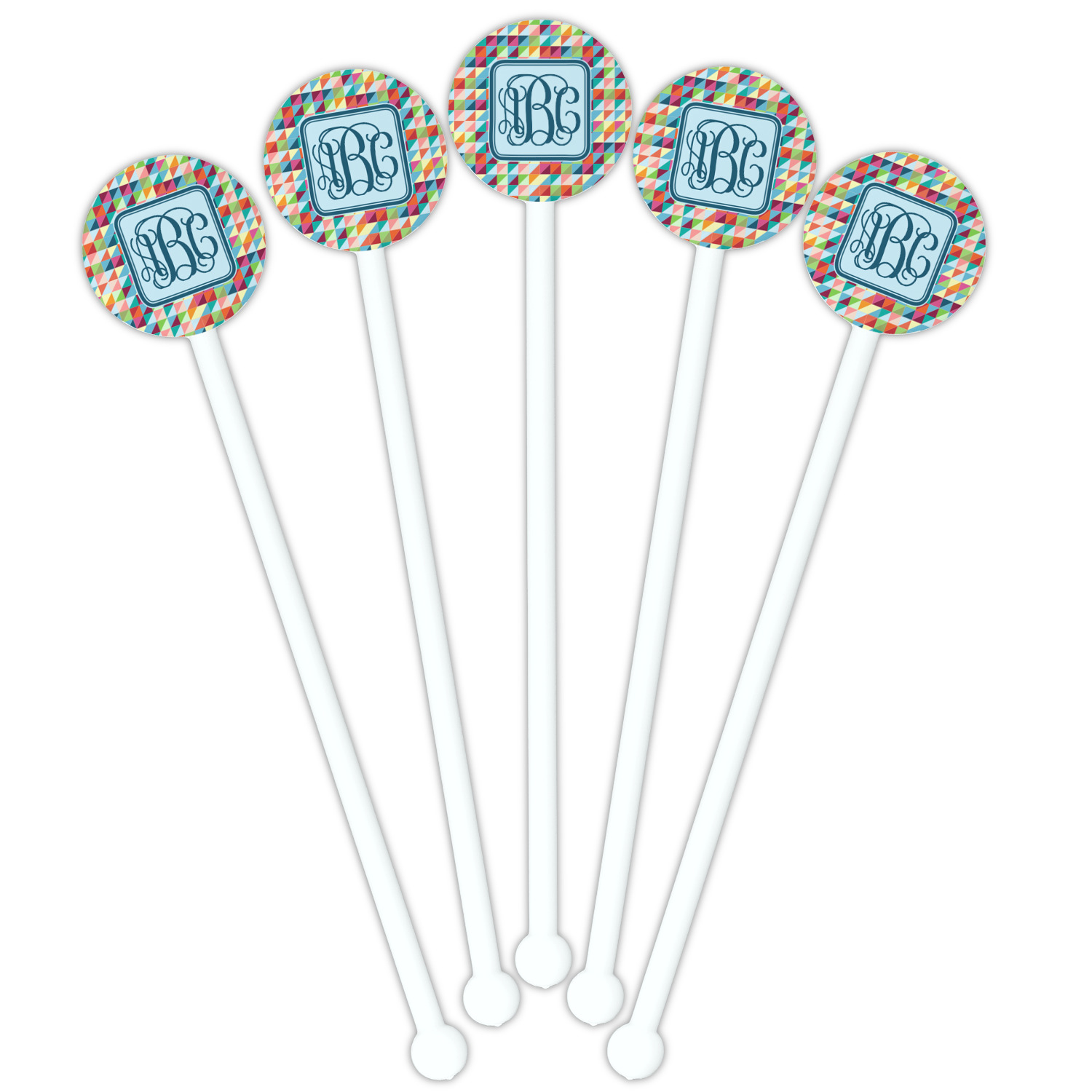 Triangles Designs for 5.5" Round Plastic Stir Sticks - White - Single-Sided