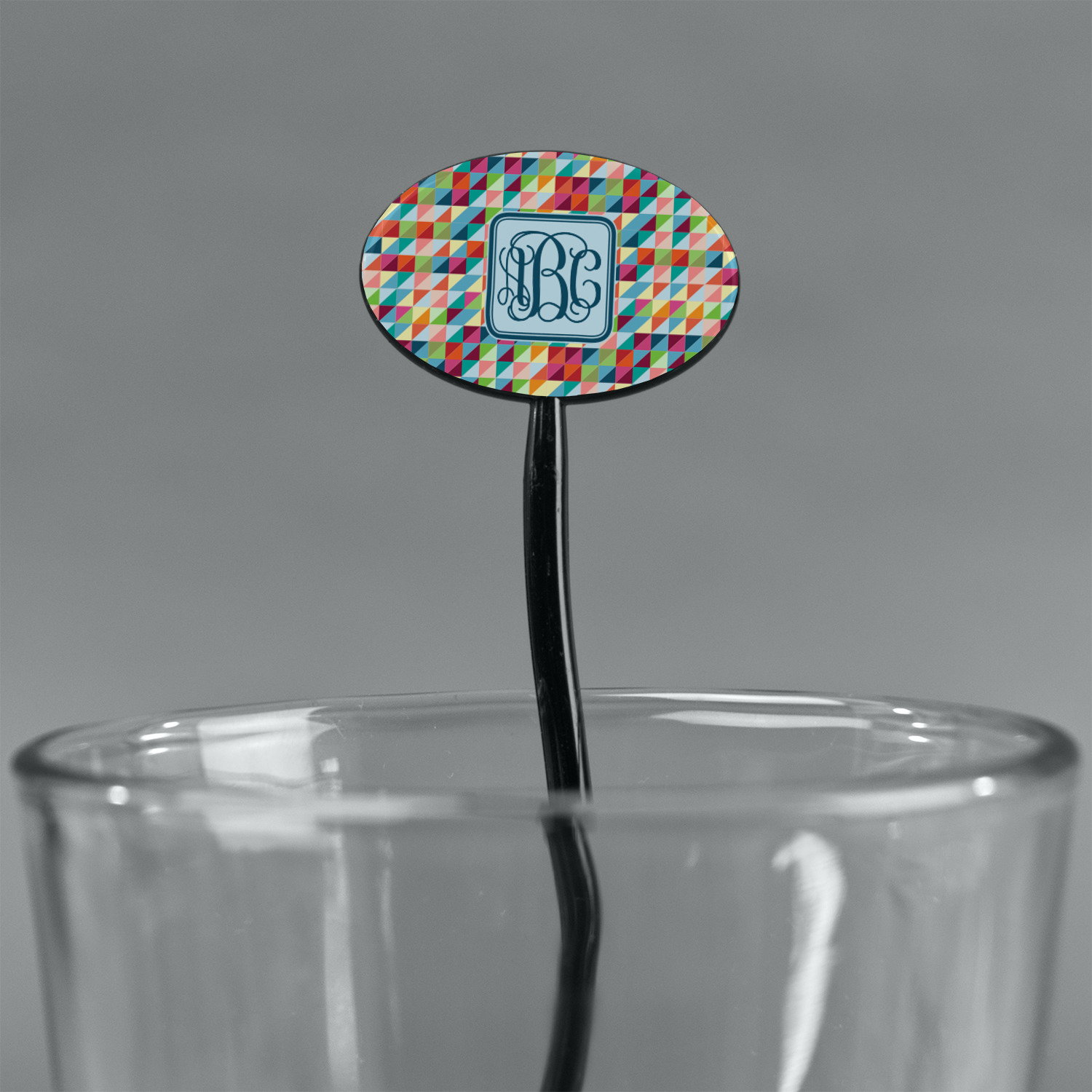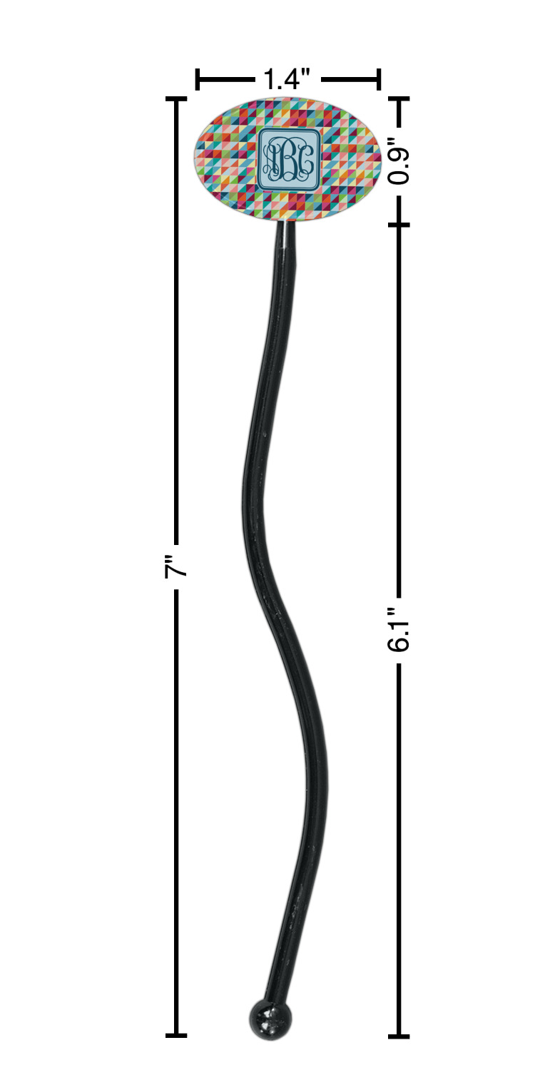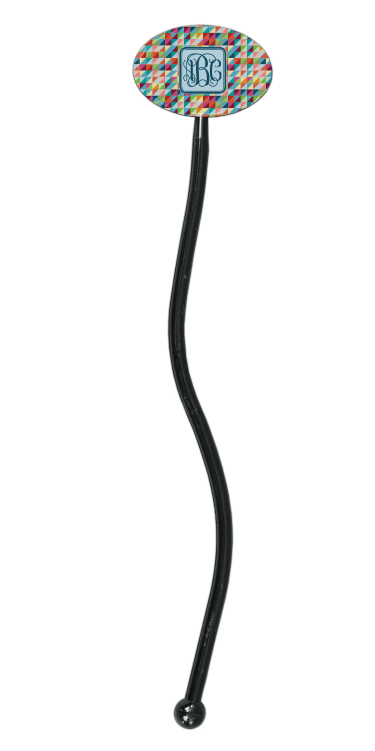Triangles Designs for 7" Oval Plastic Stir Sticks - Black - Single-Sided