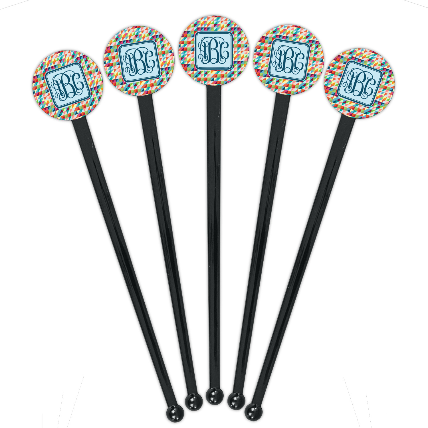 Triangles Designs for 7" Round Plastic Stir Sticks - Black - Single-Sided