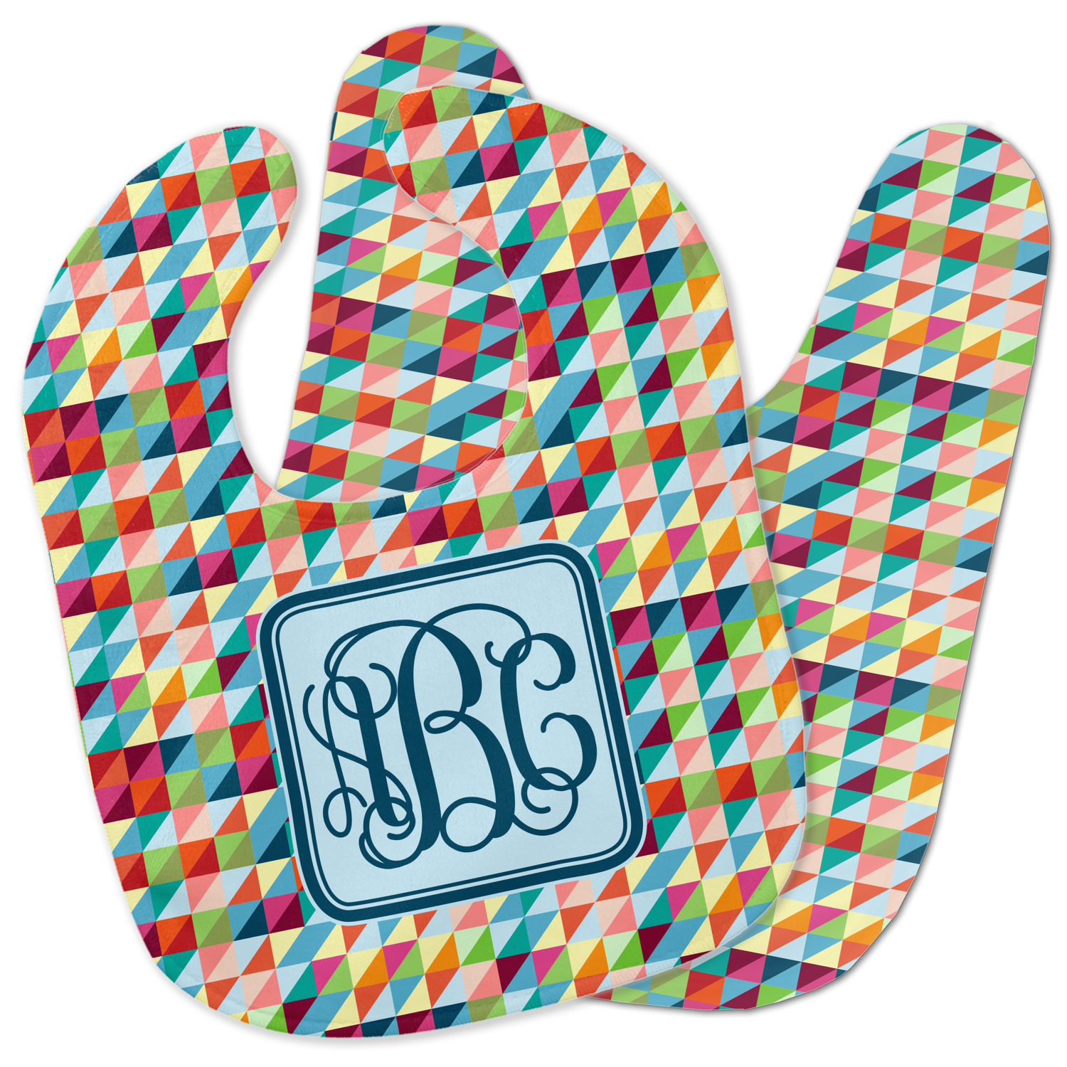 Made of soft polyester, each customizable bib hugs comfortably around the neck to catch every drip and drool. Each bib design is printed with baby-safe ink and finished with a secure stitch pattern and velcro clasp. We carry two customizable bib styles -Microfiber Velour and Jersey Knit.