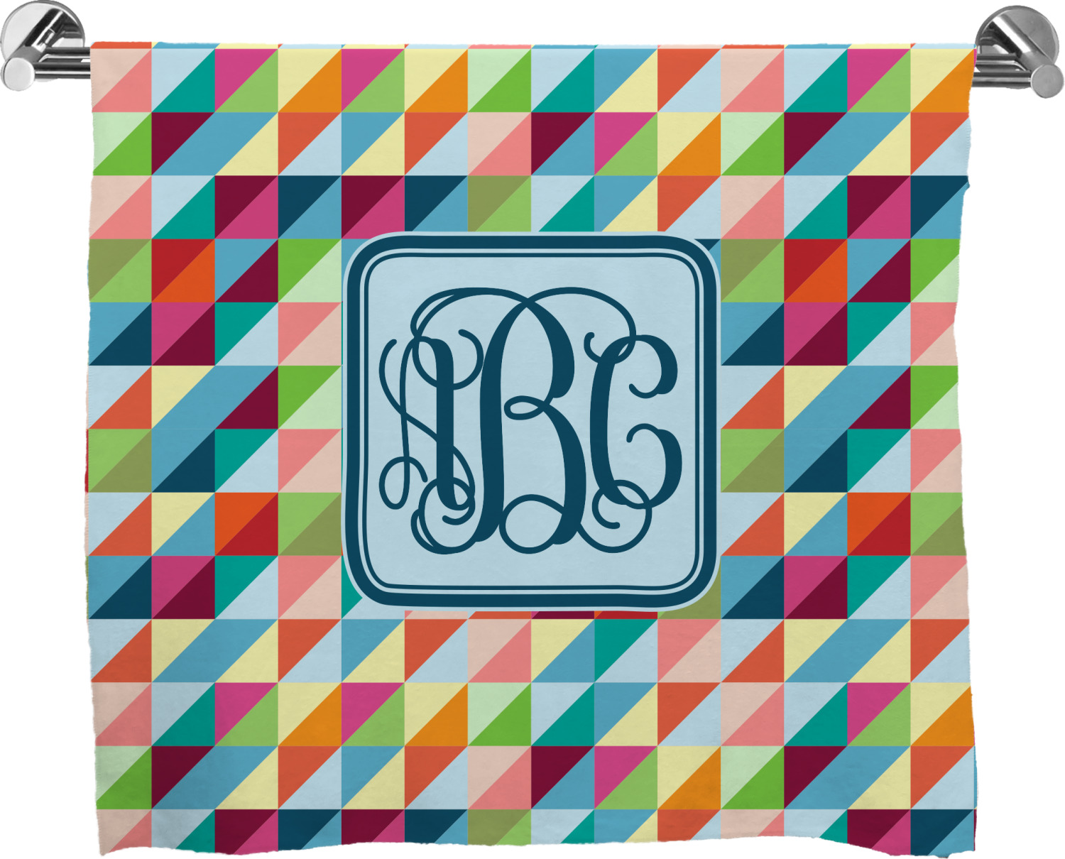These customized bath towels are slightly larger than your standard towel and are the ideal size for wrapping around your body. They measure approximately 60" x 30". Your customization is displayed across the entire front face of the towel, while the back is white.