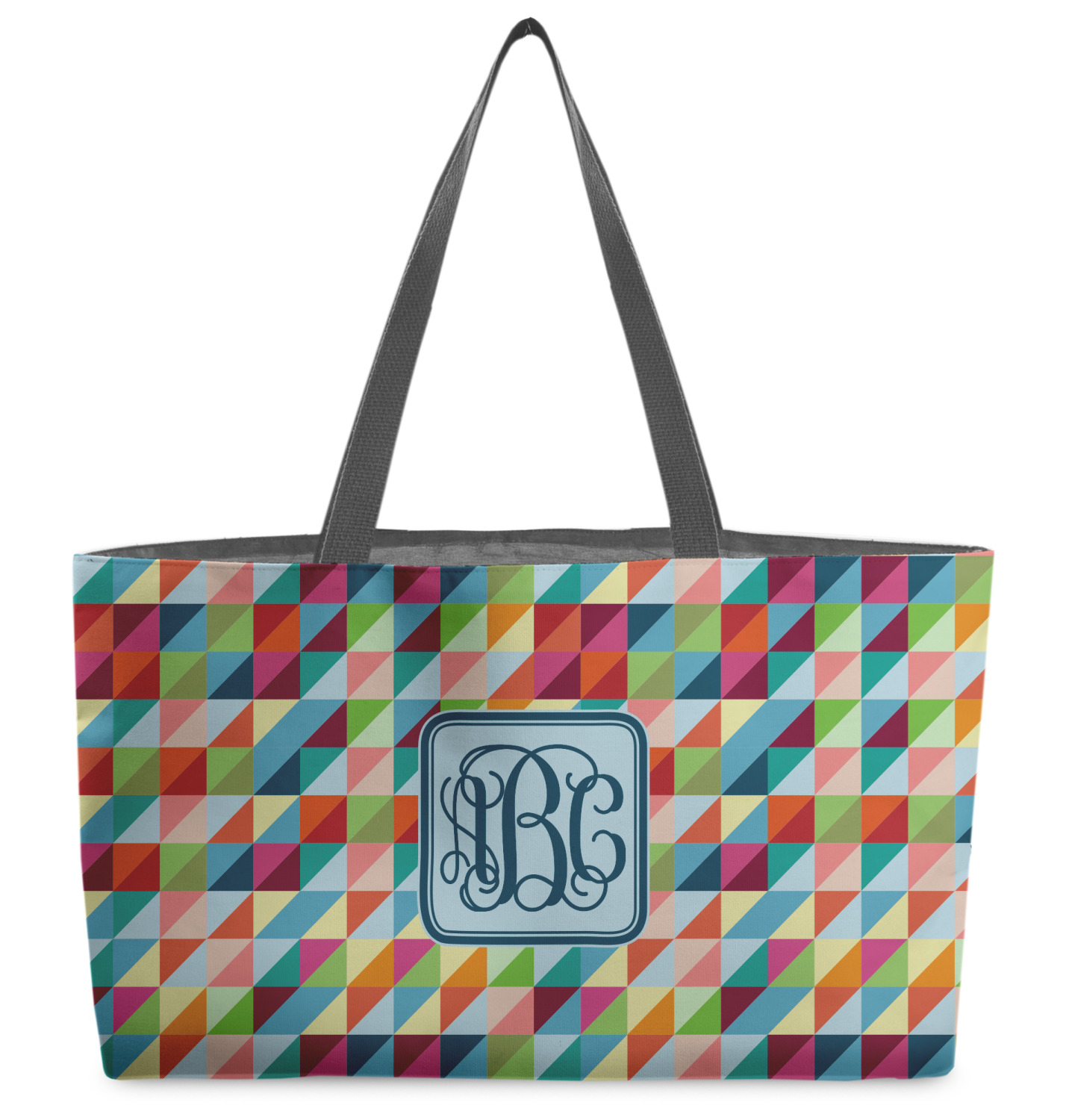 These beach totes are handmade here in the USA. Fabric is printed with your design. The tote is then sewn from the fabric pieces, lining and handles added.