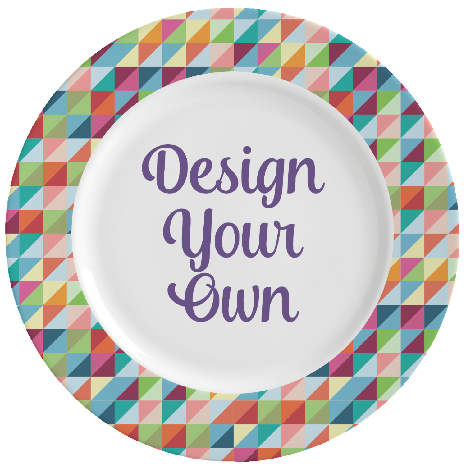 With this custom dinner plate, your have the option of personalizing the rim with an attractive pattern, and then displaying a name, graphic, or text in the center of the plate, against a white background. The exterior of this plate is also the same classic, white color. A glaze coats your plate, making your vividly colored design seem even more vibrant.