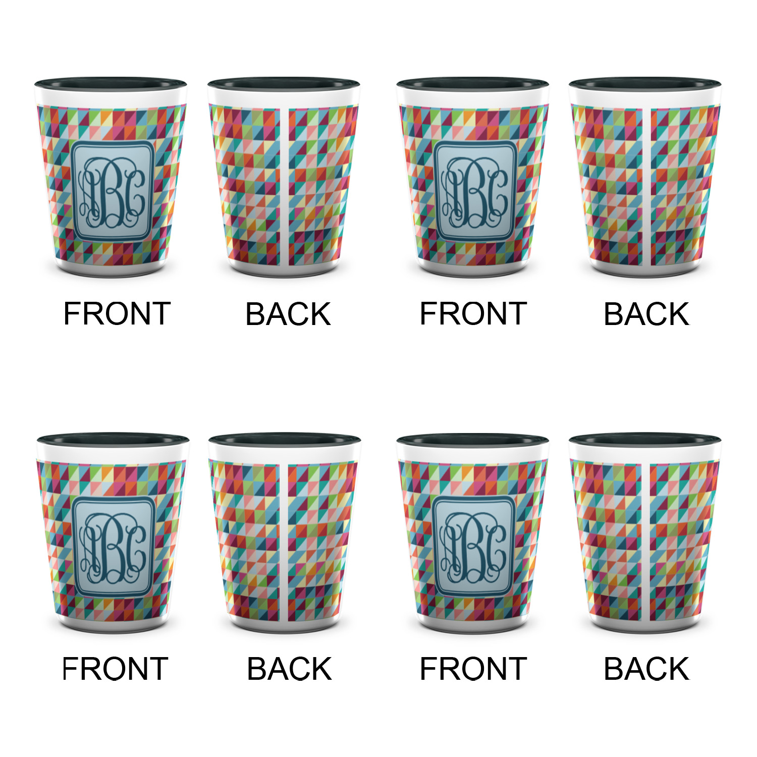 Triangles Designs for Ceramic Shot Glasses - 1.5 oz - Two Tone - Set of 4