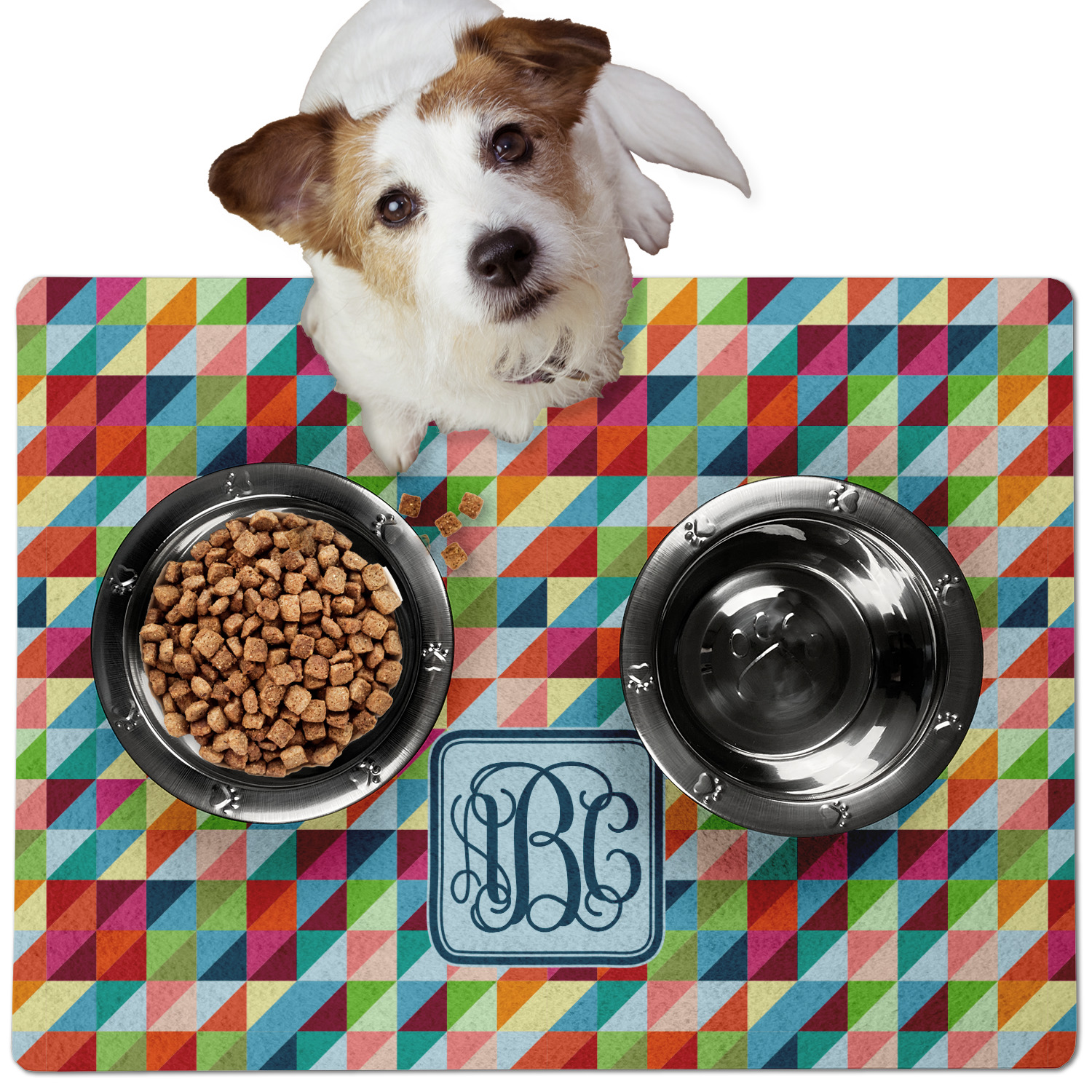 This dog bowl mat, fabricated from polyester, proudly displays your customized design on its top, while its bottom includes a non-slip rubber. This feature allows it to remain firmly in place, even when your dog spills his/her water. With 3 sizes available (18" x 12", 24" x 18", 30" x 24"), the pet food mat has ample space for both a food and water bowl for any sized dogs. Though specified for dogs' use, these mats are also a splendid option for cats.