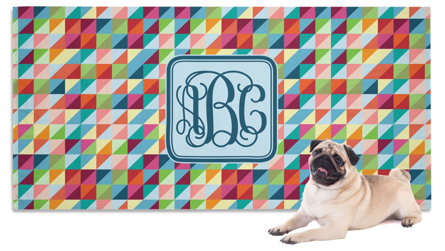 Our custom towels are crafted from a special blend of polyester and polyamide, which contributes to its lightweight, yet thoroughly absorbent nature. We craft it as such to guarantee efficiency as a convenient product; its lightweight nature makes it easy to roll up and carry along, yet it is still able to dry off even the wettest, muddiest pet. It measures at 60" x 30" and is sizable enough to dry off even the largest of pets. With our towel's gentle, soft-to-the-touch material, your pet will be sure to anticipate its warm, dry embrace. We print your personalized design on the front of the towel, while the back is white.