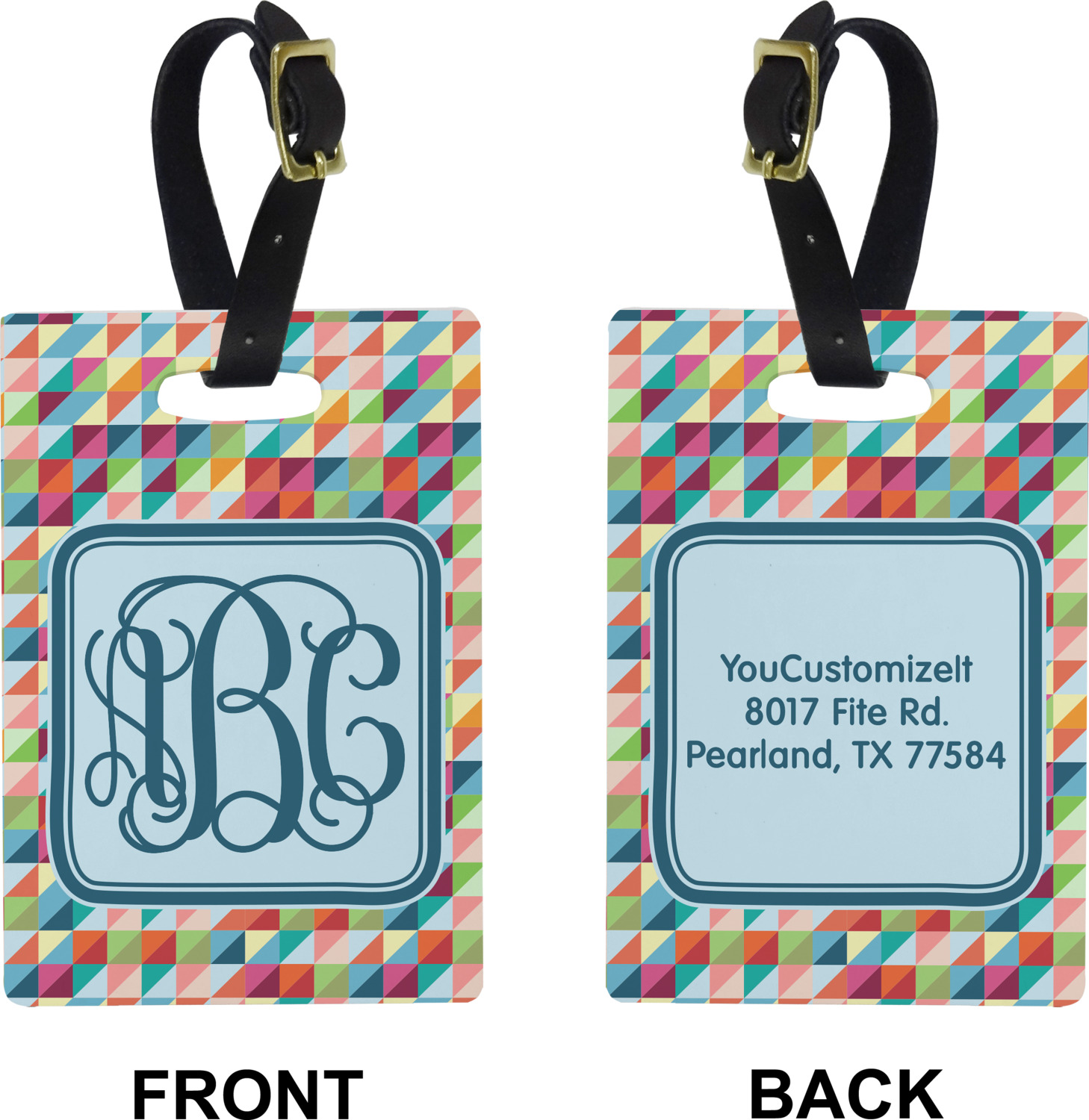 These cute luggage tags are made of a fiber-reinforced, UV-resistant plastic, making them waterproof and durable enough for both everyday use and the rugged adventures of any traveler! A leather strap with holes and a buckle is included with your purchase and can be used to attach your custom luggage tag to any suitcase, backpack, or duffel bag. You can design these travel tags as you wish; your customization will be displayed across the front, while the back will show as little or as much personal information as you want.