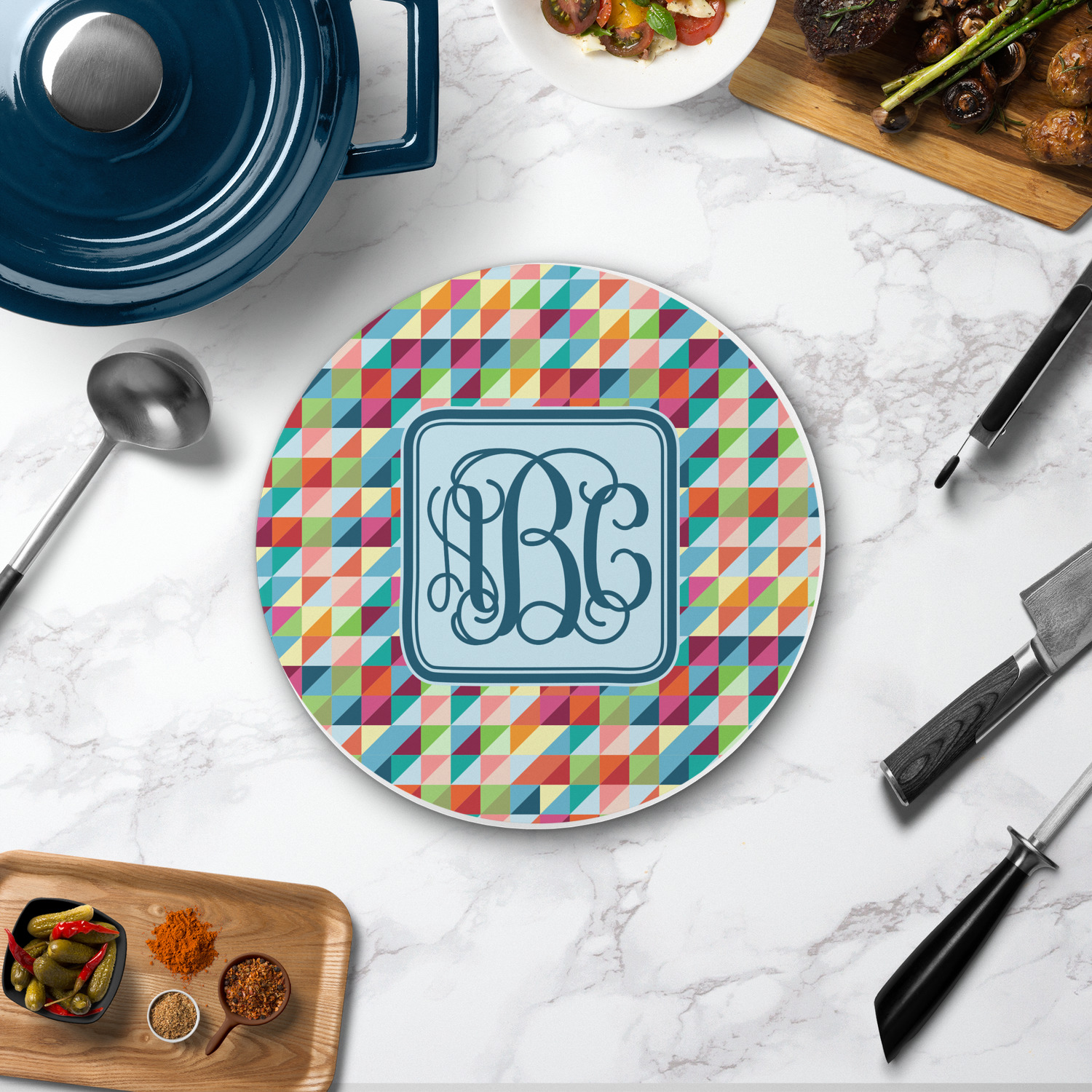 The round trivets can be customized with your own design, your own photo, or your own logo. You can add personalization, like a monogram, family name or initial to your uploaded design / art. You can also customize one of our designs and change the patterns, colors, personalization, fonts etc.