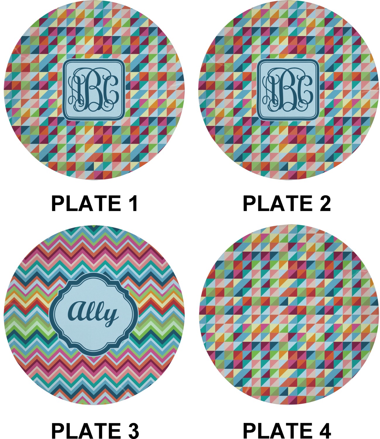 With a of designs and patterns, these plates are completely customizable. Choose a foodie design, complete with red-hot chili peppers, or go classic with stripes or plaid. Include your monogram or family name to make sure these plates never get lost at parties!