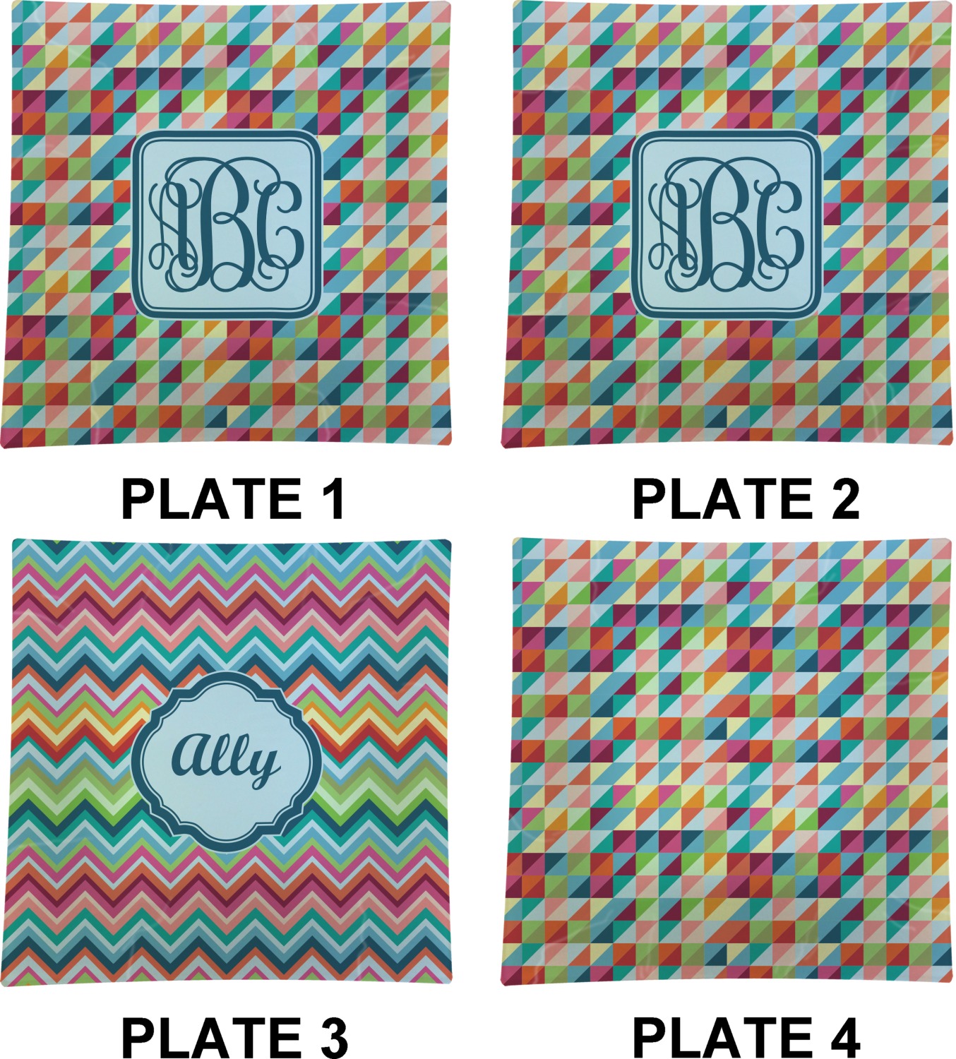 Triangles Designs for Glass Square Lunch / Dinner Plates 9.5" - Set of 4