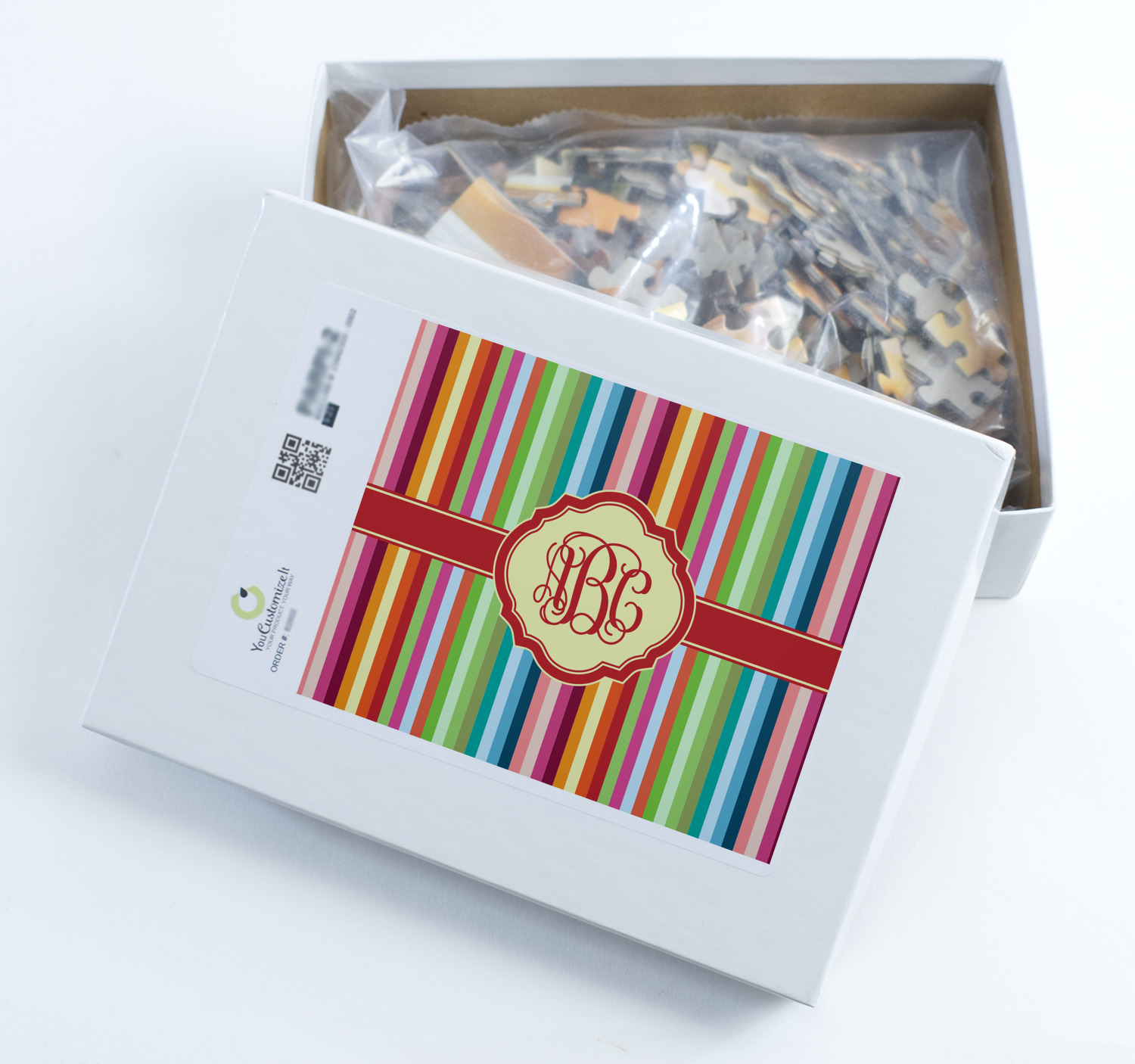 We print our puzzles on thick white chipboard in vibrant colors, then laminate the chipboard and die cut your puzzle. Your jigsaw puzzle is shipped to you in a box with the image of the puzzle on the box.