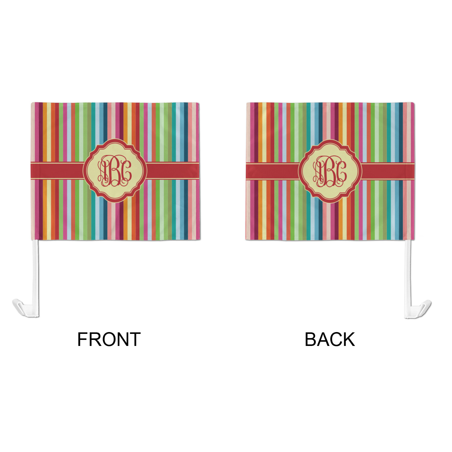 Our personalized flags are made from a durable, yet lightweight cloth that will proudly bear your logo or design of choice, while withstanding the outside elements. We have two size options - 8" x 11" and 11" x 15". Both come with a flag pole which includes a clip that secures the pole to the side window, whether it is rolled up or down. The flags are printed on both sides to display your design from all directions.