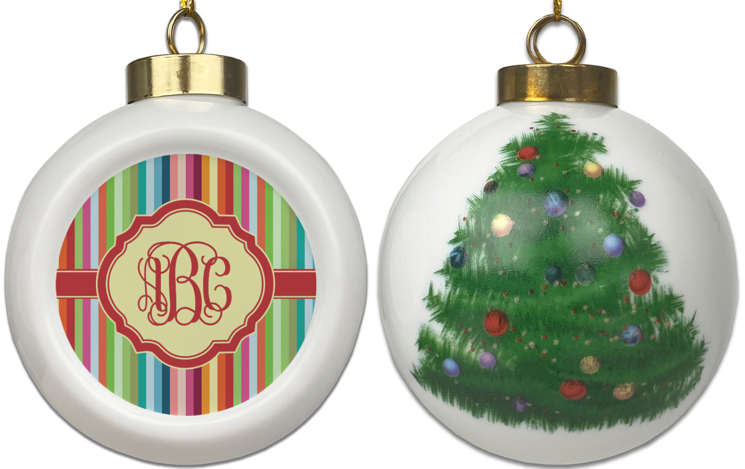 Our Christmas ornaments are a unique ceramic ball shape with a twist as it has a flat face to display your custom design! Select from one of our two design types - Christmas Tree or Poinsettia Garland - to adorn the curved back of your personal design. Each ornament measures 3H x 2.5W x 2D accompanied with a gold string accent for finishing touches to hang on your beautiful Christmas tree!