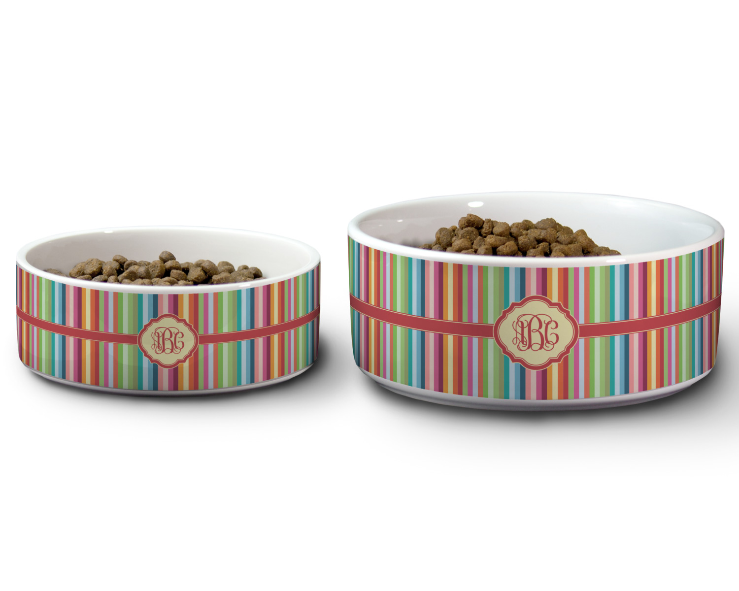 Our customized, ceramic dog bowls allow you to fashion a durable, yet expressive gift for your pet. These bowls are fashionably versatile; they suit both cats and dogs and can hold either food or water. Add your pet's name or favorite color to the design, and spruce up his/her eating area with one or two personalized pet bowls!