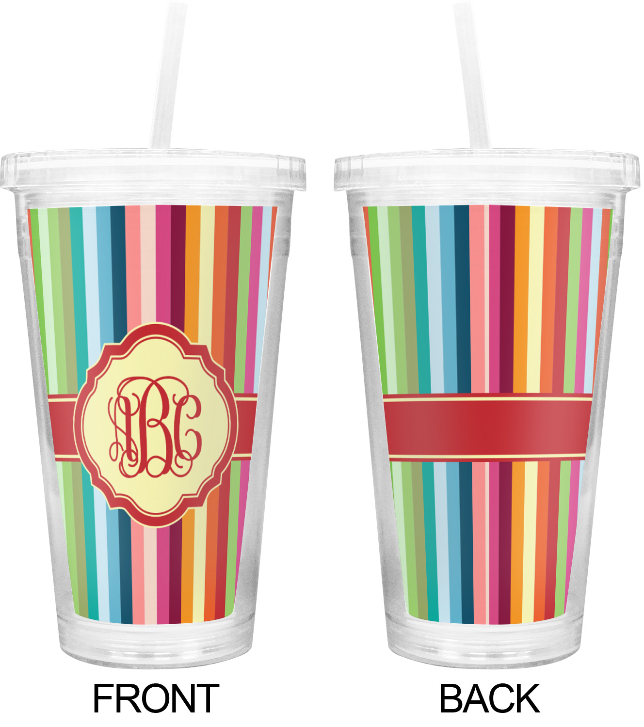 These BPA free tumblers with their double walls keep your drink cold and will not sweat on the outside; they have a clear acrylic top and a reusable straw with a ring around the bottom to keep the straw from falling out.